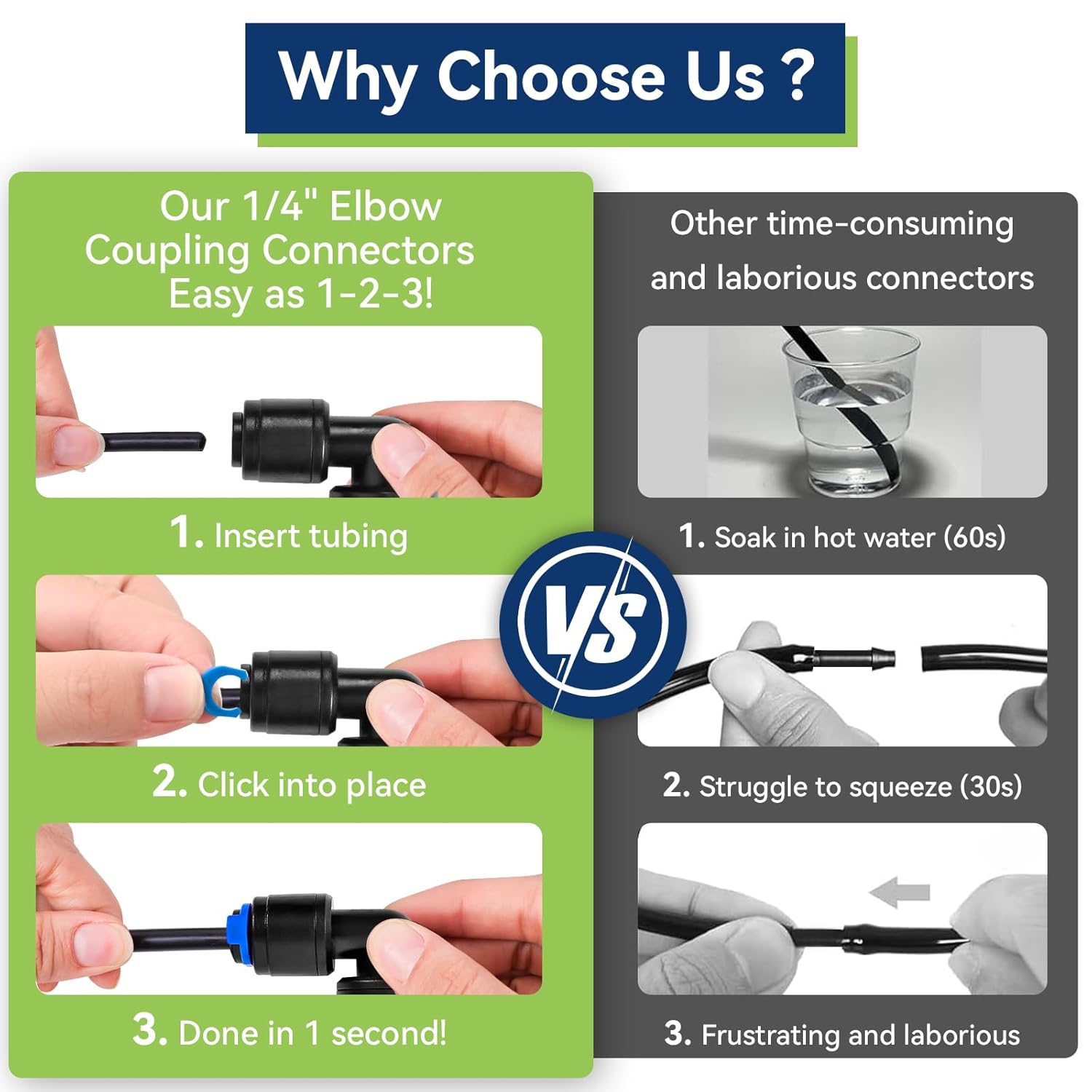 10 Pack 1/4" Universal 90 Degree Elbow Fitting, Quick Connect Universal Drip Irrigation Tubing Coupling Valve, Connector Locking Fitting for Sprinkler or Drip Irrigation System.