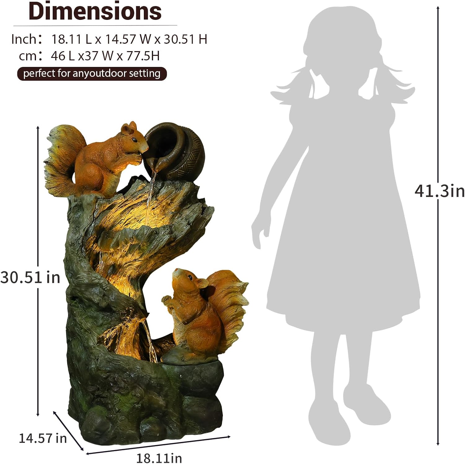 Garden Fountain Outdoor with Built-in Pump & LED Lights - Waterfall Fountain for Patio,Yard, Backyard - Realistic Animal Sculpture