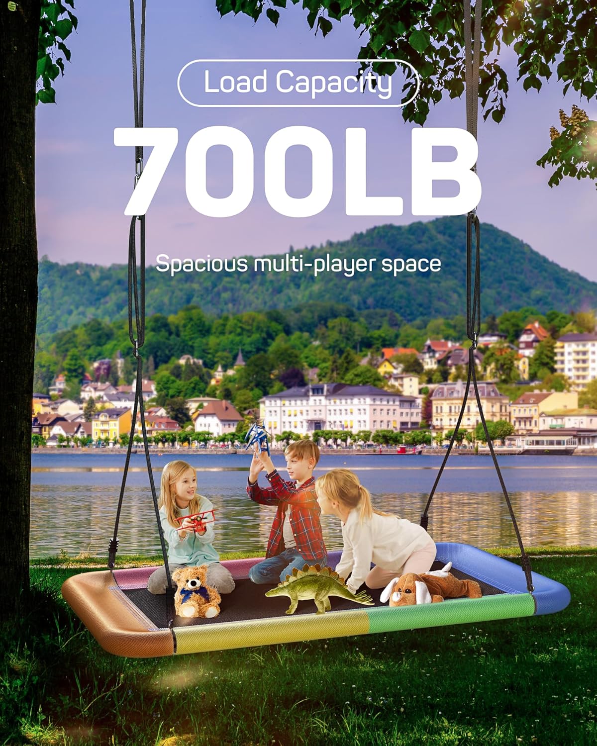 Tree Swing for Kids and Adults, 60" Waterproof Rectangle Platform Swing, 700lbs Heavy Duty with Adjustable Straps, Colorful