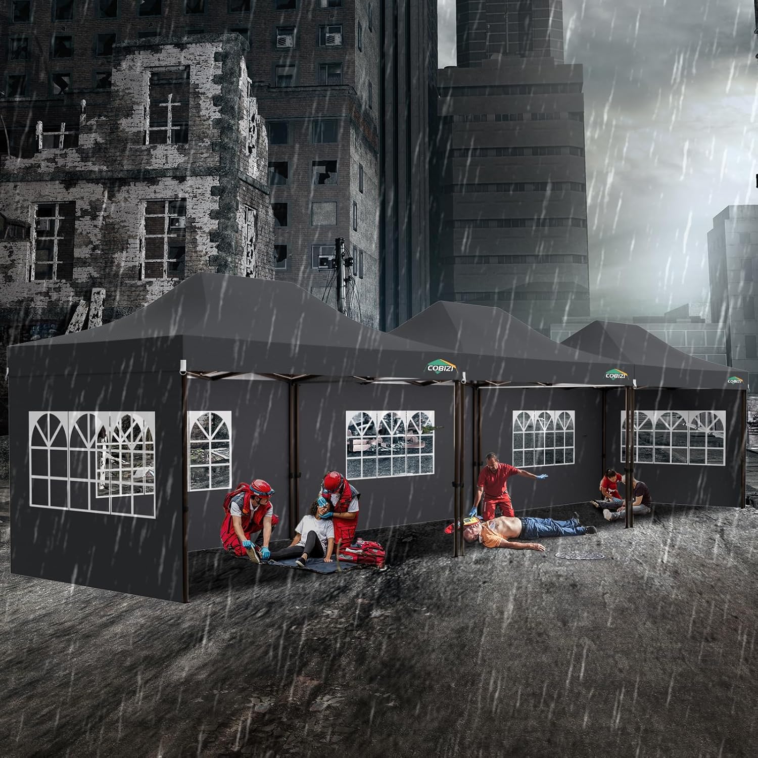- [Upgrade Heavy Duty Canopy] The COBIZI 10x15 Heavy Duty Canopy features a commercial-grade full truss structure constructed from durable powder-coated stainless steel. The thickness of the 1.77 inch (45mm) hexagonal legs has been increased to 0.7mm/0.03 inches, providing superior stability and durability. Full truss design ensures exceptional sturdiness and rust resistance, capable of withstanding wind speeds of up to 30mph when properly secured with an number of sandbags, ropes, and stakes.