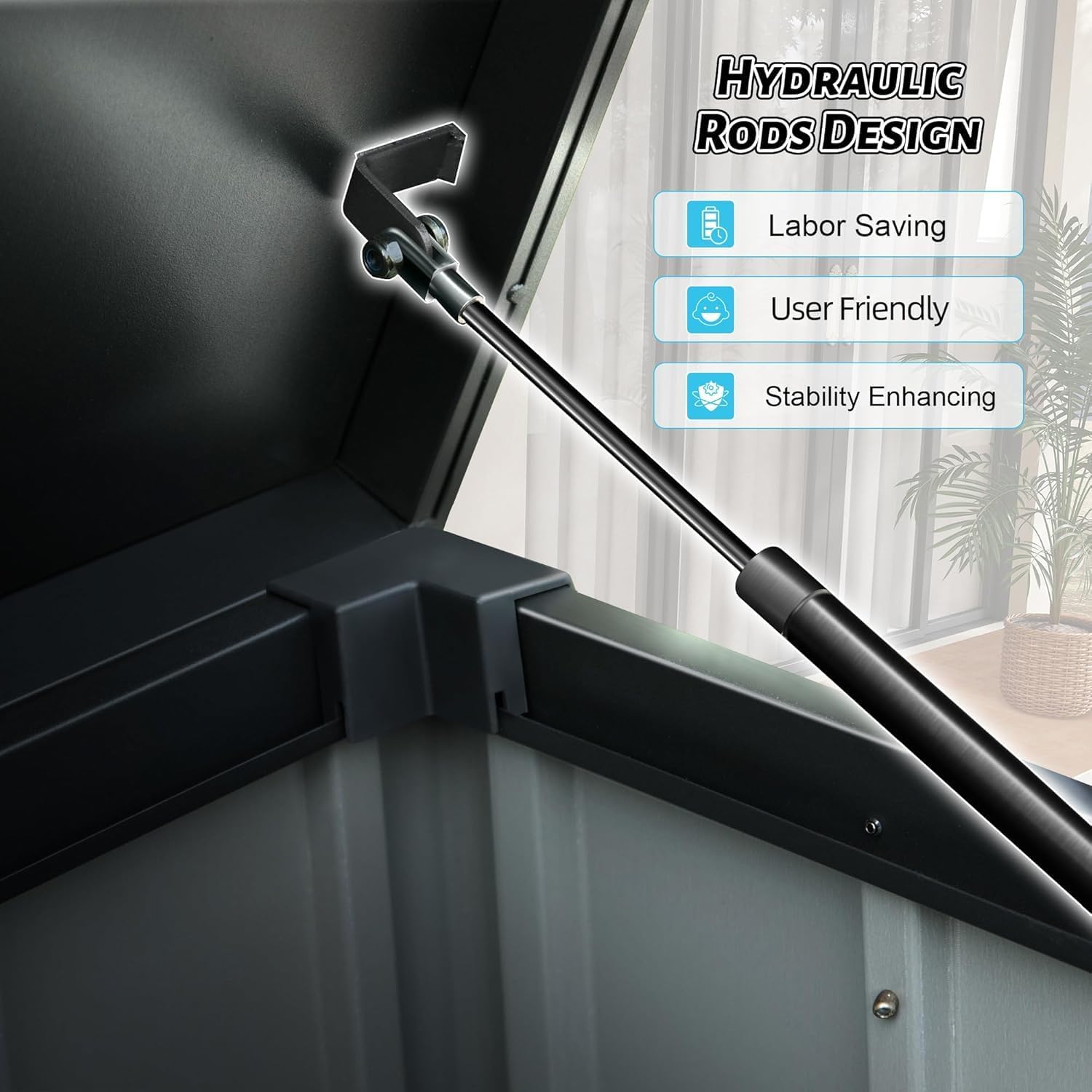 - SHPAI Upgraded Galvanized Steel Deck Box - this patio deck box is made of high quality metal which is more durable and strong than others’ resin/rattan/wood materials. SHPAI's exclusive corrosion and oxidation resistant tech make it more long-lasting and looks like new after long time using.