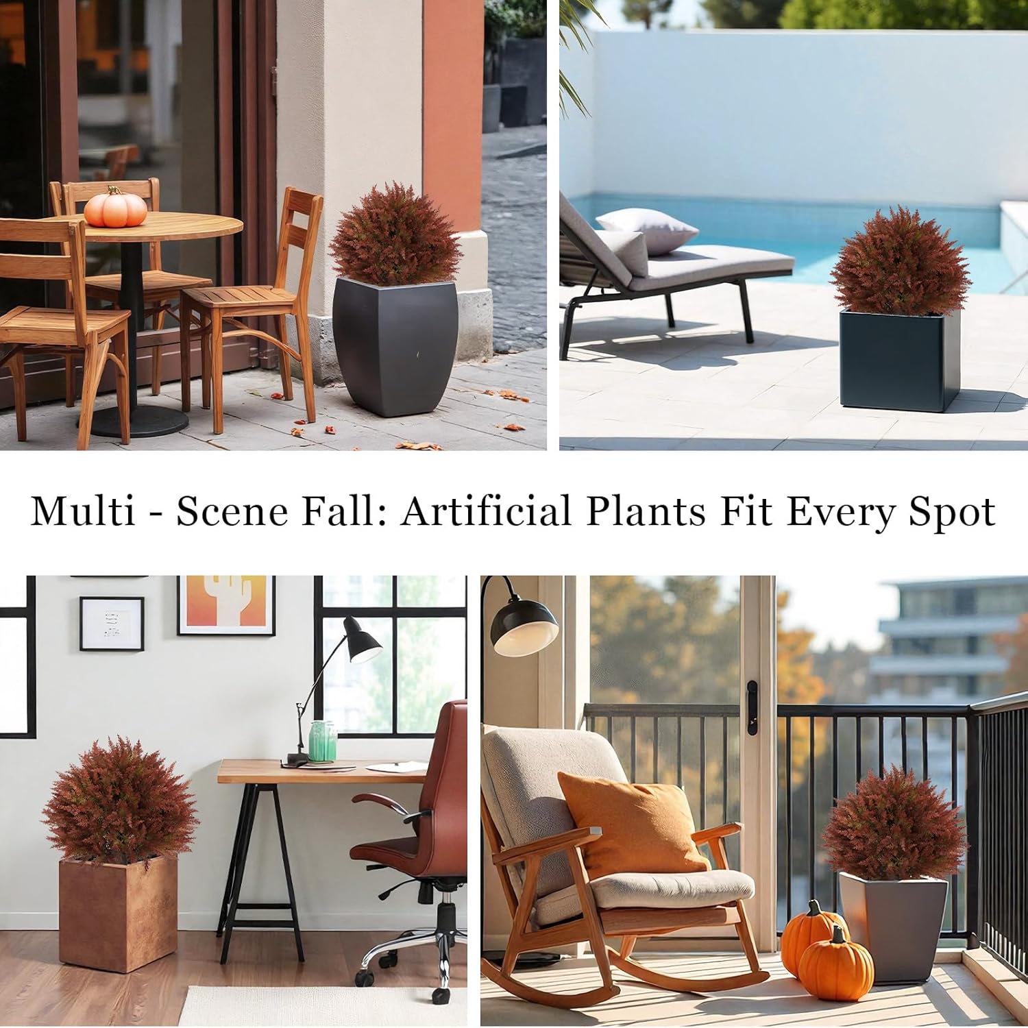 - 【UV Resistant & Weatherproof – Outdoor Durable】Made with UV-protected plastic, these artificial outdoor plants resist fading and cracking, even under autumn sun, wind, or rain. A long-lasting way to keep your fall décor bright and festive
