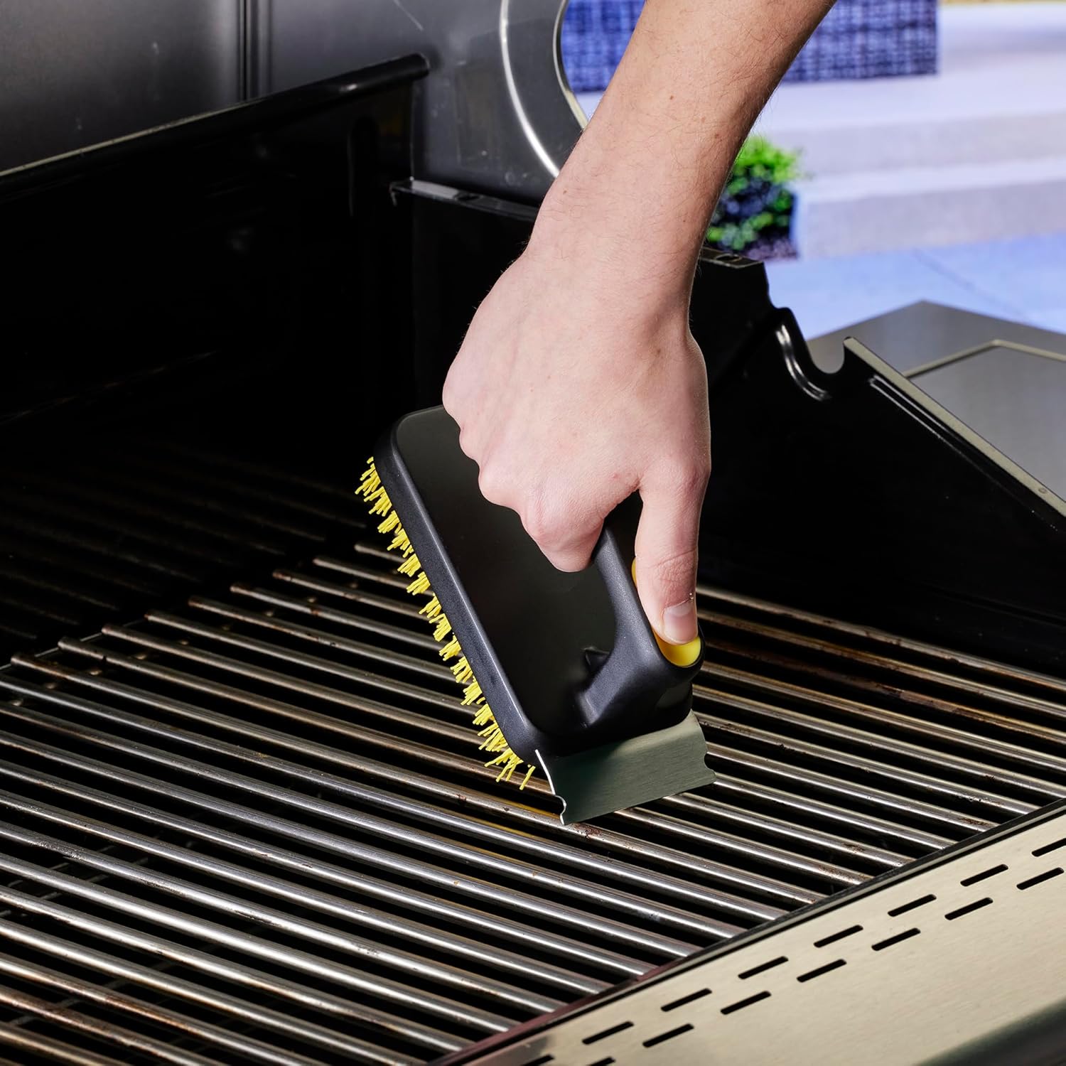 - Built-In Steel Grid Scraper for Extra Tough Spots: When the gunk won’t budge, the built-in steel grid scraper has your back. This feature is perfect for handling thick, stuck-on debris that needs a bit more elbow grease. It’s seamlessly integrated into the brush, giving you the extra cleaning power you need without switching tools.