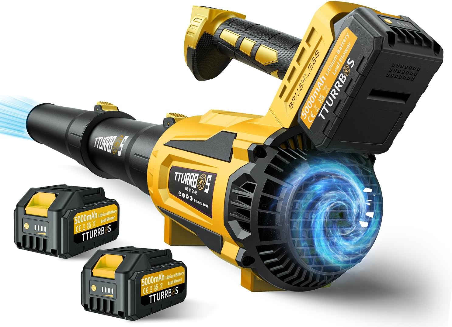 - 【Powerful & Efficient Next-Gen Brushless Motor】Get next-level blowing power with our leaf blower cordless, engineered with a high-performance brushless motor for unmatched durability and efficiency. Unlike traditional blowers, our advanced design delivers up to 650 CFM and 180 MPH—effortlessly clear heavy leaf piles and yard debris. The axial fan technology maximizes airflow, making this professional-grade leaf blower one of the most powerful blowers for lawn care on the market