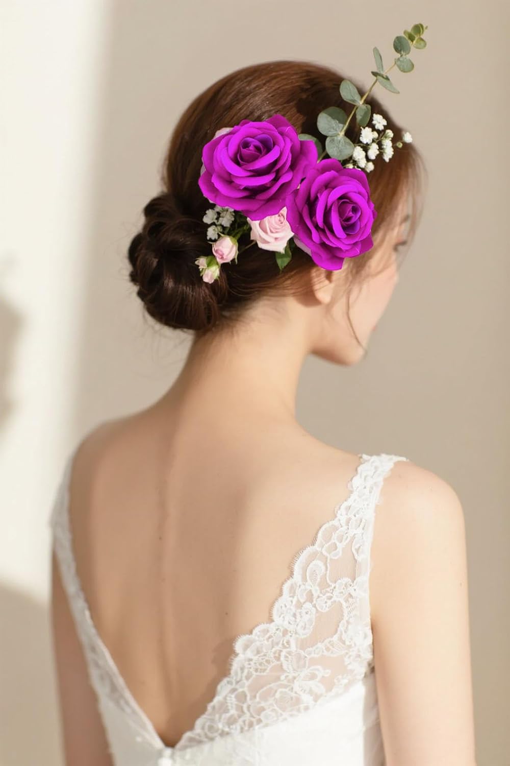 - The Material Of The Rose Head: The artificial purple rose flower head is handcrafted and made of durable and soft velvet material. It has a bright color and imitates the edges of real rose petals, looking natural and beautiful