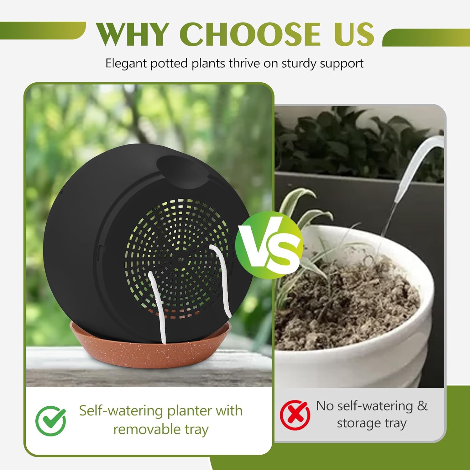 - 【Self-Watering Hanging Flower Pots with Removable Saucer】The innovative recessed design under each hanging indoor planter maintains optimal water levels for your plants and serves as a reservoir for consistent watering. This feature eliminates the hassle of watering plants while you're away on business trips or traveling, thanks to our hanging plant pot.