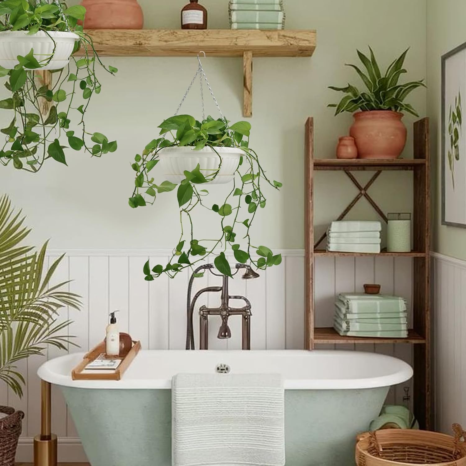 - Plant baskets are made of high quality plastic, light-weight. Coated metal chain, not easy to rust.