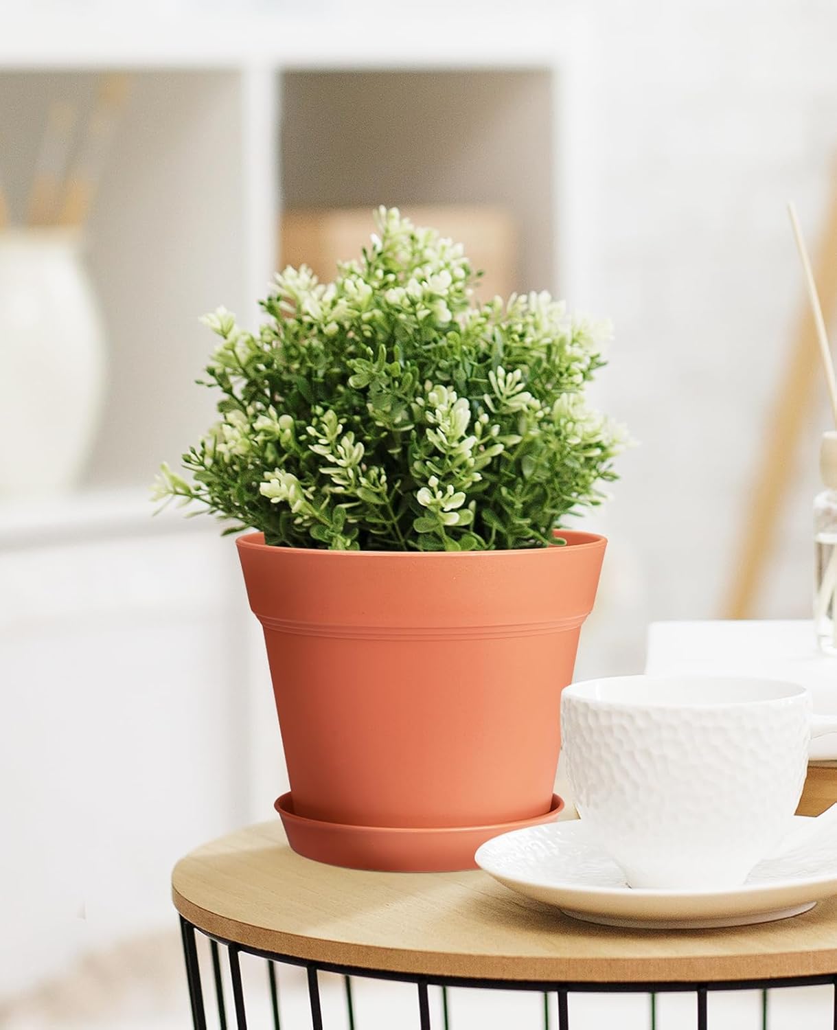 homenote Plant Pots,7.5 Inch Flower Pots for Plants Plastic Planters for Indoor with Multiple Drainage Holes and Trays, for All Home Garden Flowers Succulents,Outdoor(Terra Cotta,8 Pack)