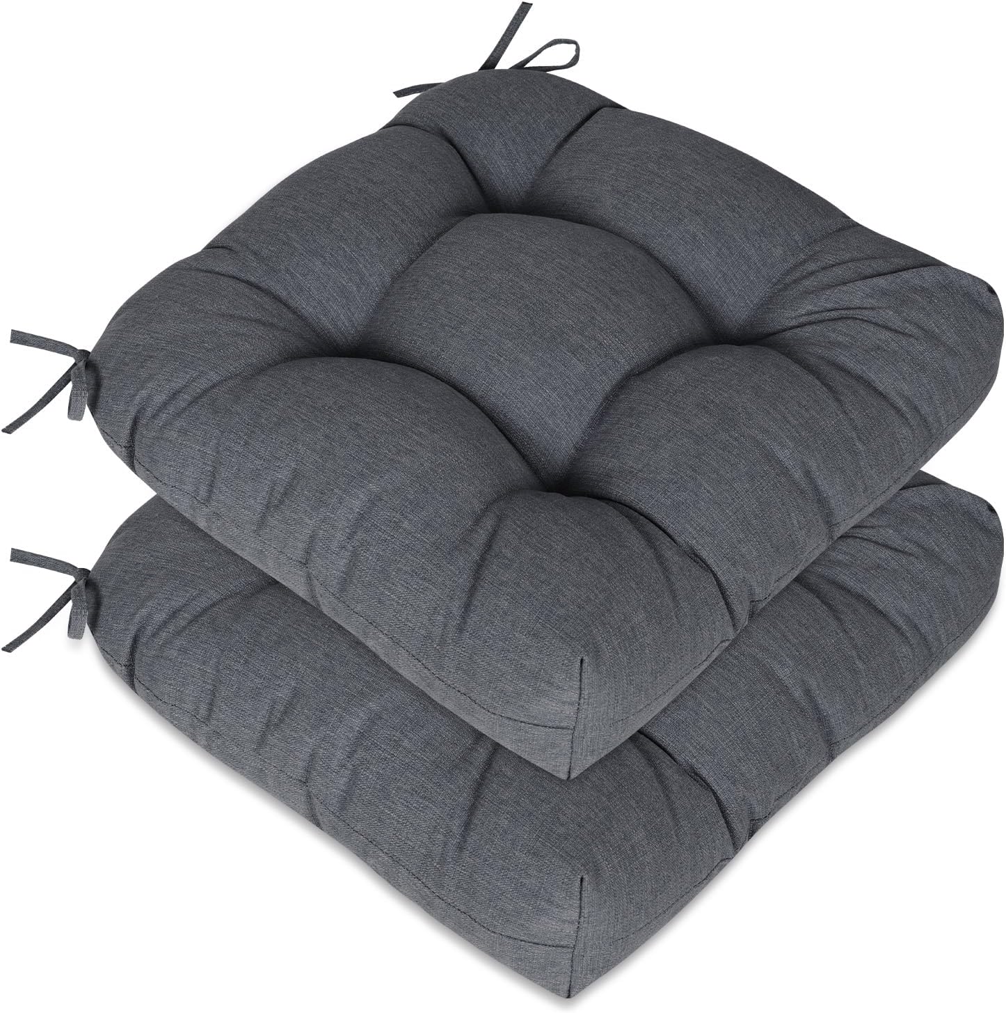 Aoodor 19" x 19" x 5" Tufted Outdoor Chair Cushions, Water Resistant & Fade Resistant Polyester Dining Chair Pads with 2 Straps for Patio Furniture, Set of 2
