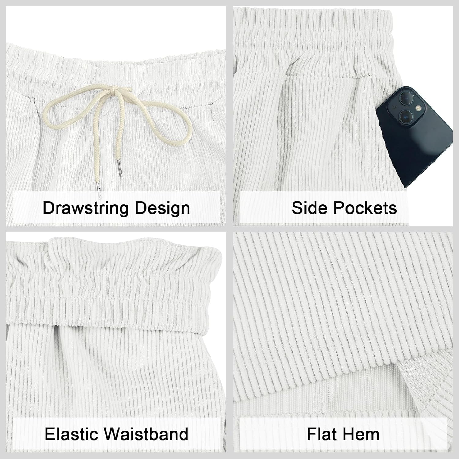 Mens Cargo Shorts Casual Drawstring Elastic Waist Corduroy Summer Beach Shorts with Pockets