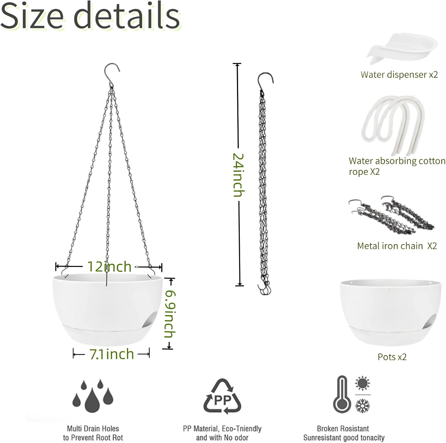 - 【Package Included】You will receive 2 plastic hanging pots for plants indoor with removable trays, 2 iron chains, 2 absorbent cotton ropes, 2 water adders. These flower pots are easy to install and suitable for kitchens, balconies, gardens, terraces and other places. They are perfect gifts for family, friends, colleagues and gardening enthusiasts.
