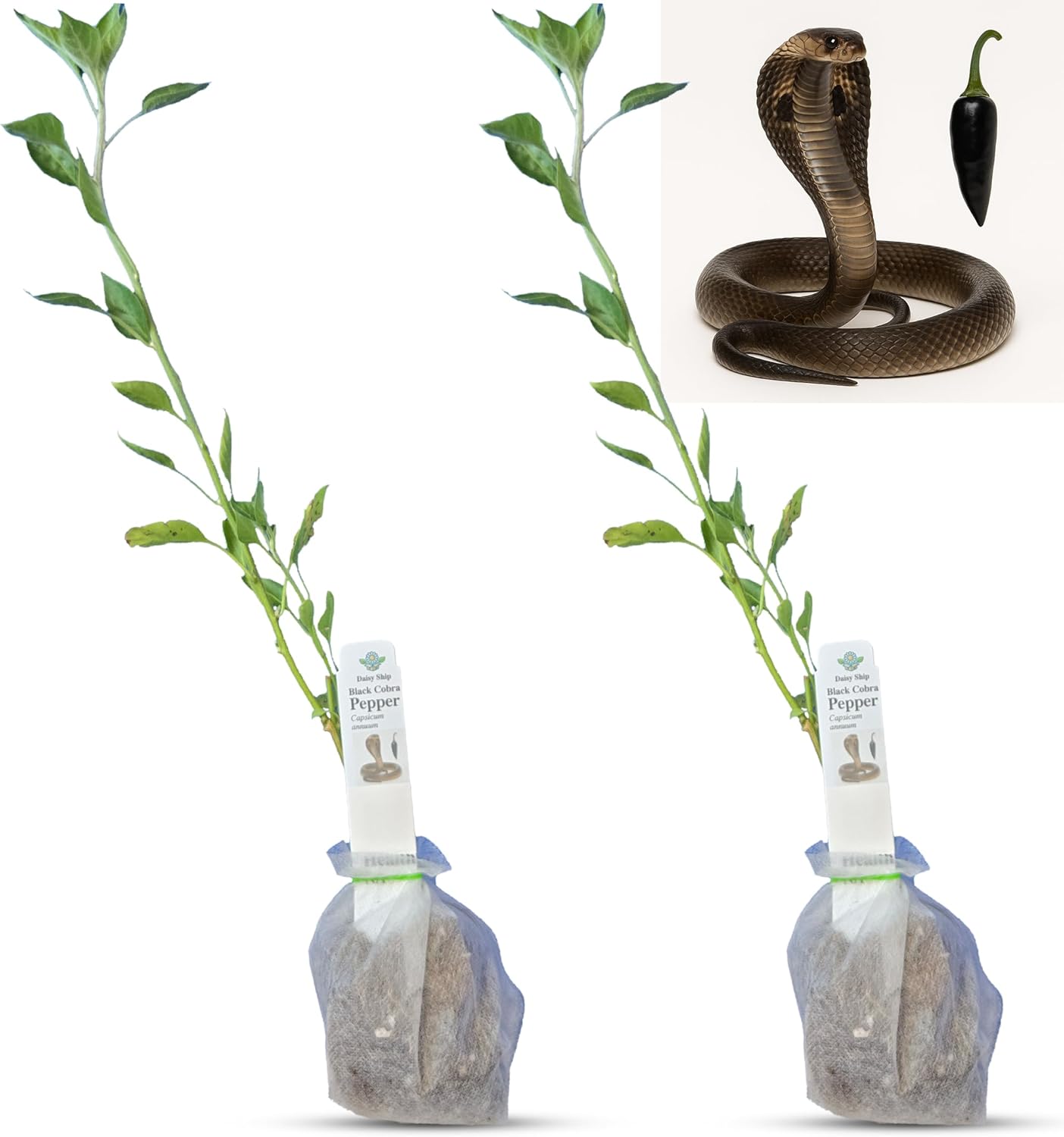 Premium Black Cobra Pepper (Capsicum Annuum) - Rare & Exotic Hot Chili Pepper, Perfect for Home Gardening and Gourmet Cooking (2 bkcbr pep Bags)