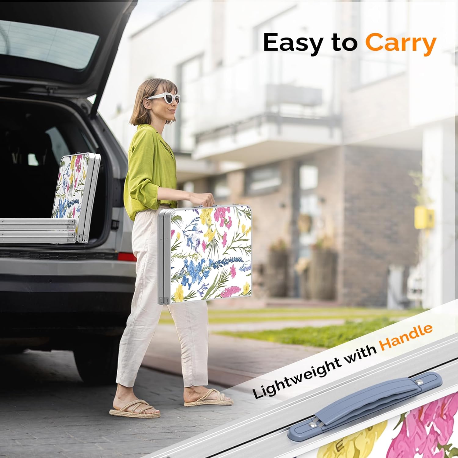 - LIGHTWEIGHT&FOLDABLE: MDF tabletop and aluminum feet make its weight just 8.1 lbs. The feet could be set off and tabletop could fold in half, foldable like suitcase(23.6β*17.7β). It is convenient to carry it to anywhere with its soft carry handle.
