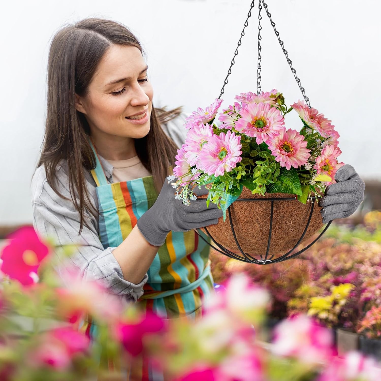 - Durable and Natural Material: Our hanging baskets for plants are expertly crafted from metal, coconut coir liner. The coconut fiber not only retains moisture, keeping your plants hydrated, but also provides air circulation to foster healthy root growth