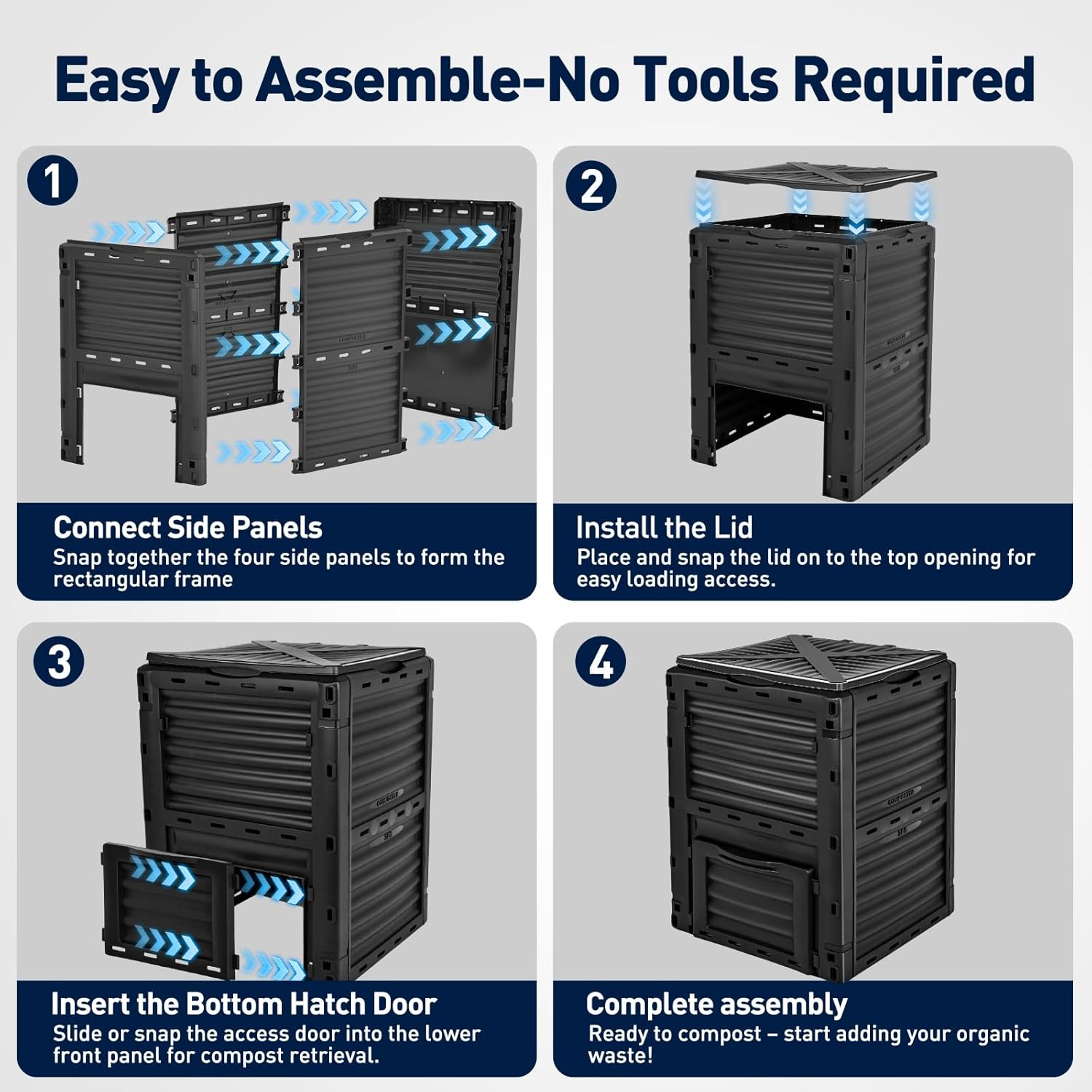 - Easy to Assemble – Designed with simplicity in mind, this compost bin comes with clear instructions and can be quickly set up without the need for tools.