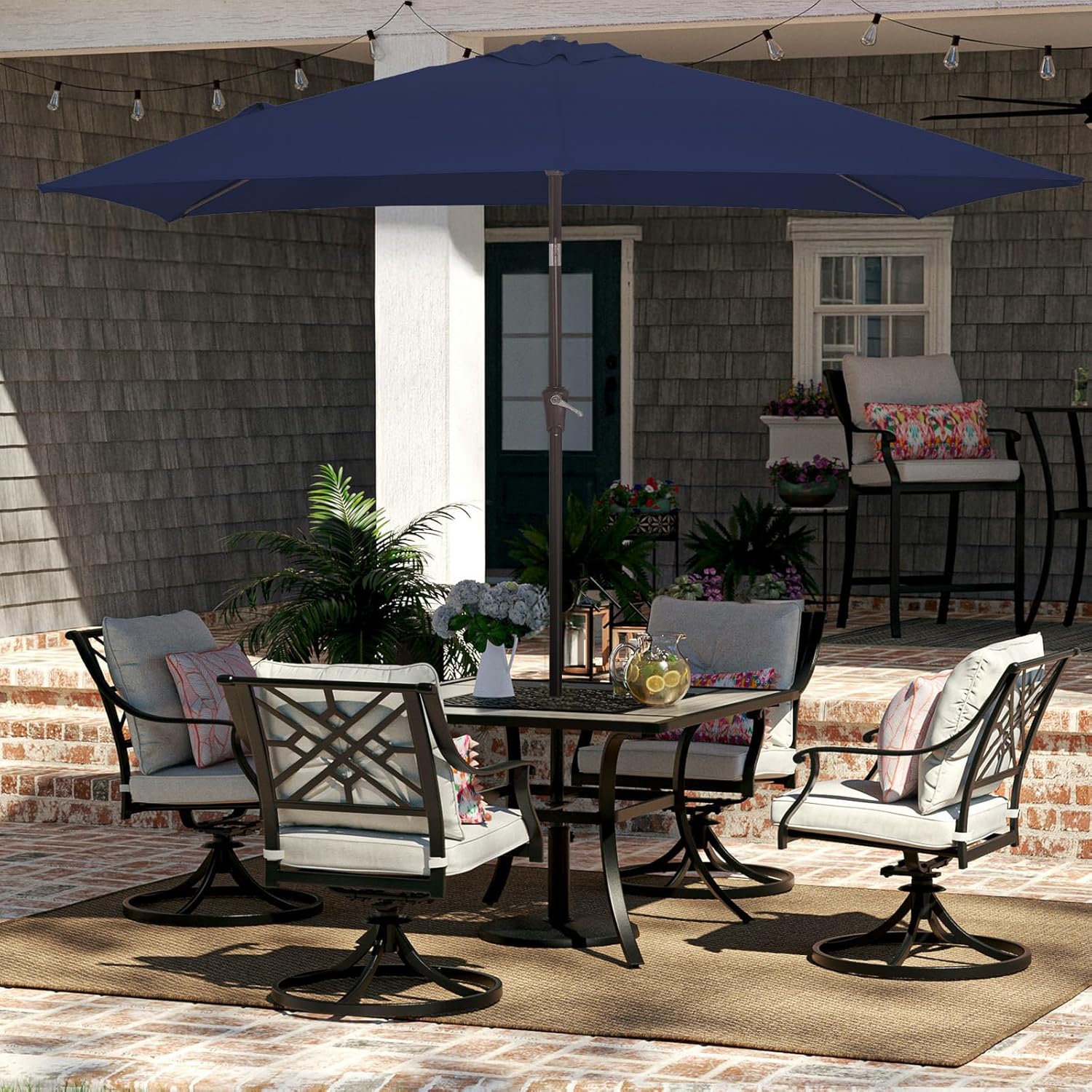 - 【WIDE SHADE】- The size of JEAREY rectangular patio umbrella is 6.5' x 10'. The rectangle design is beautifully styled and has a wide range of shade space, which can accommodate a table and chairs for 4-6 people