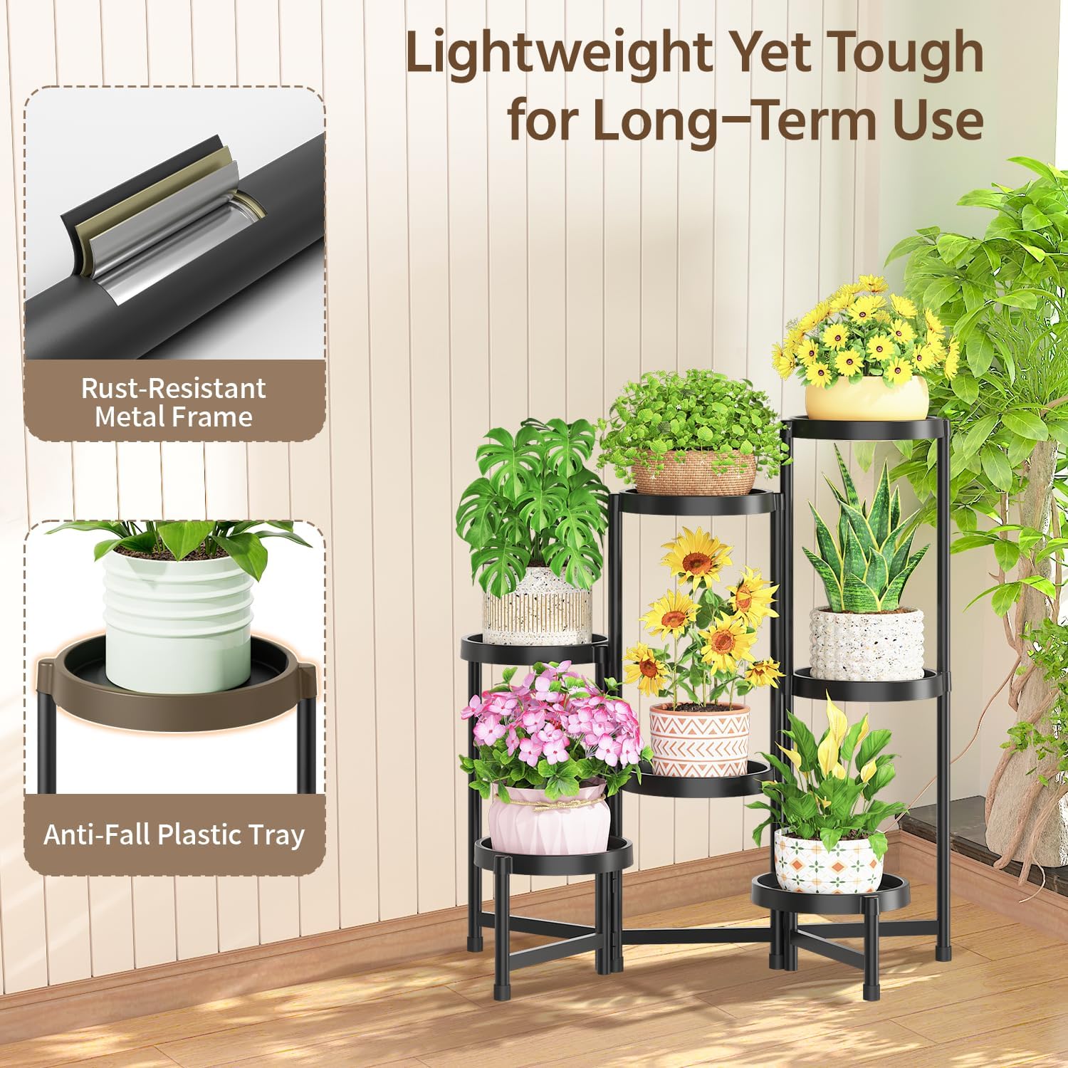 - 【2-Minute Assembly】Say goodbye to complicated assembly! Set up your dream plant display in under 2 minutes—just unfold the plant stand indoor, drop in the trays, and start enjoying your indoor garden instantly. Even if you've never assembled a thing, you'll have it ready before your coffee cools.