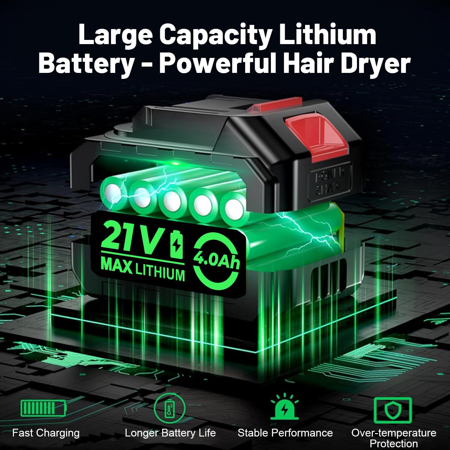 - 【Adjustable Speed Mode & Safety Tips】Leaf blowers adopts an infinitely variable speed switch, allowing you to achieve the desired wind intensity according to different cleaning needs. The battery features built-in temperature control protection for safe charging. When charging, the indicator light displays red, and when fully charged, the indicator light will turn green. To maximize the lifespan of the battery, please fully charge it when not in use.