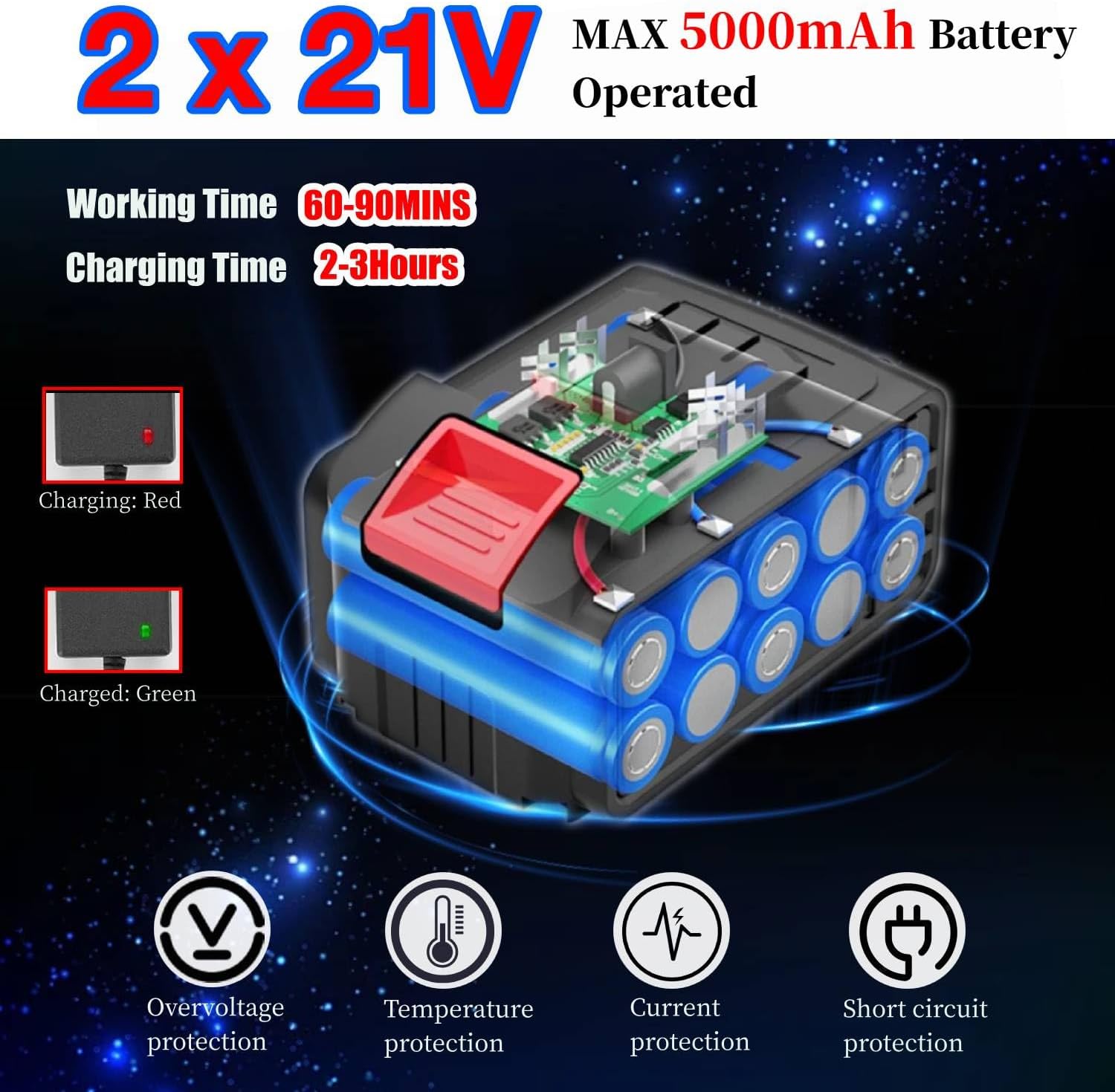 - 【2 Quick-Release Batteries】This weed trimmer is equipped with two 21V rechargeable lithium batteries and fast charger, running for about 40-60 minutes and charging for 2 hours. You can use 2 batteries alternately to provide continuous power for outdoor work. Equipped with removable wheels, free your shoulders when you are tired, say goodbye to various restrictive tools, and improve work efficiency. (Please fully charge before first use)