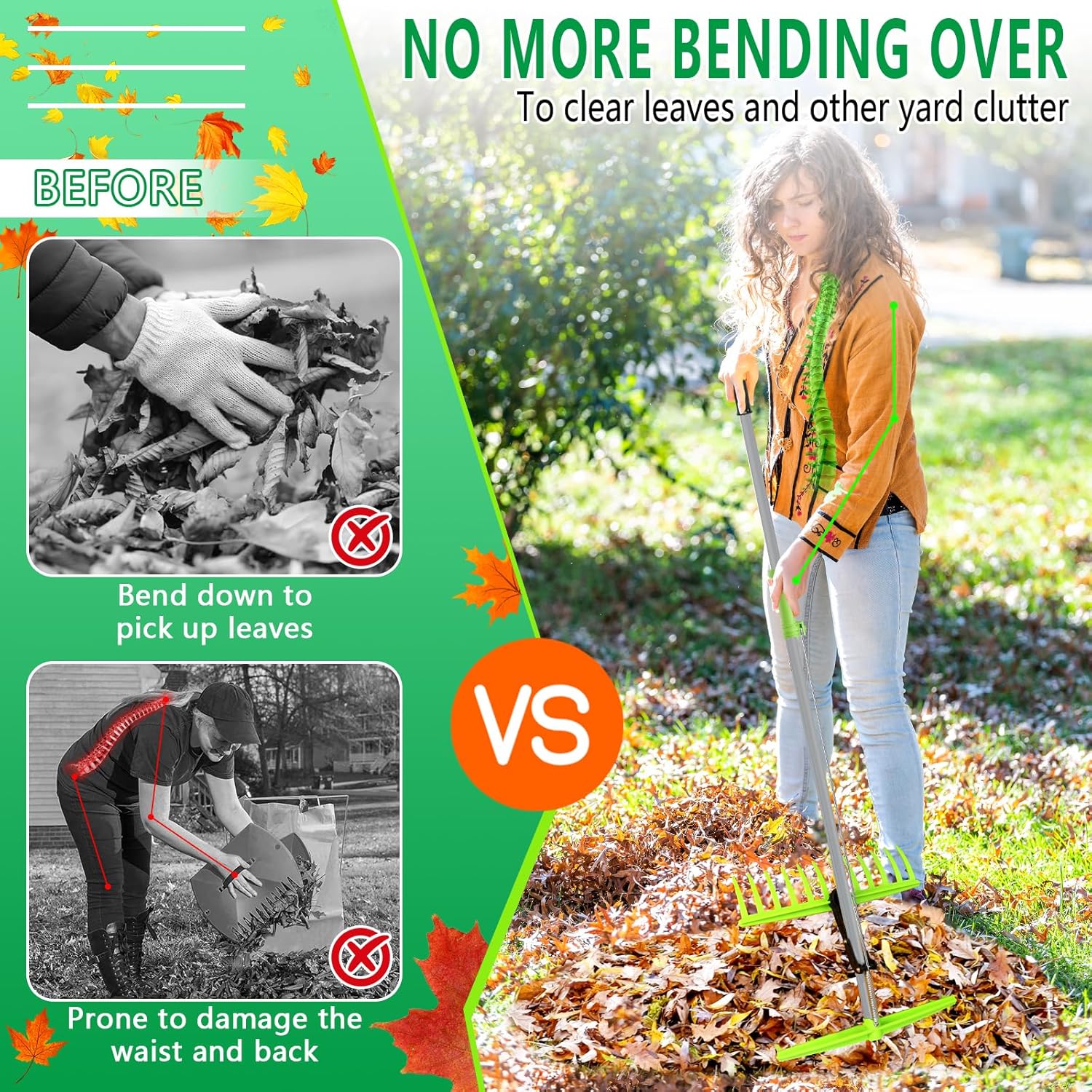 - Back-Saving Ergonomic Design: The leaf scoops with long handle enables you to improve back posture during continuous leaf removal work, eliminating the need for frequent bending over and takes the strain off your waist and knees. Perfect for long-term fall cleanup sessions and regular yard maintenance, this ergonomic leaf grabber is an indispensable innovative tool for your garden