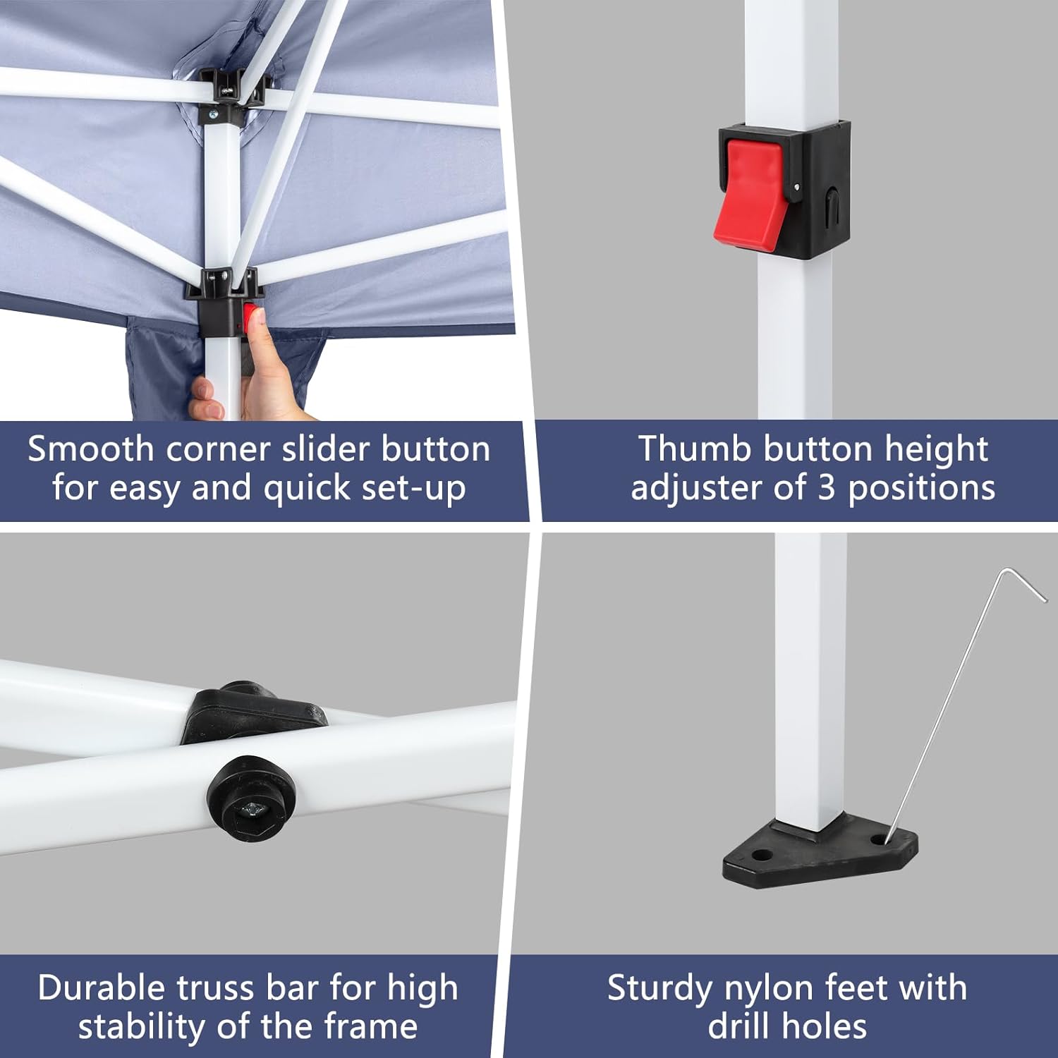 - 【WIDE USAGE】This party tent is perfect for commercial or recreational use like party, wedding, graduation, flea market, small business, outdoor events, patio leisure, backyard, camping, picnics, sporting events, arts and crafts tables and much more
