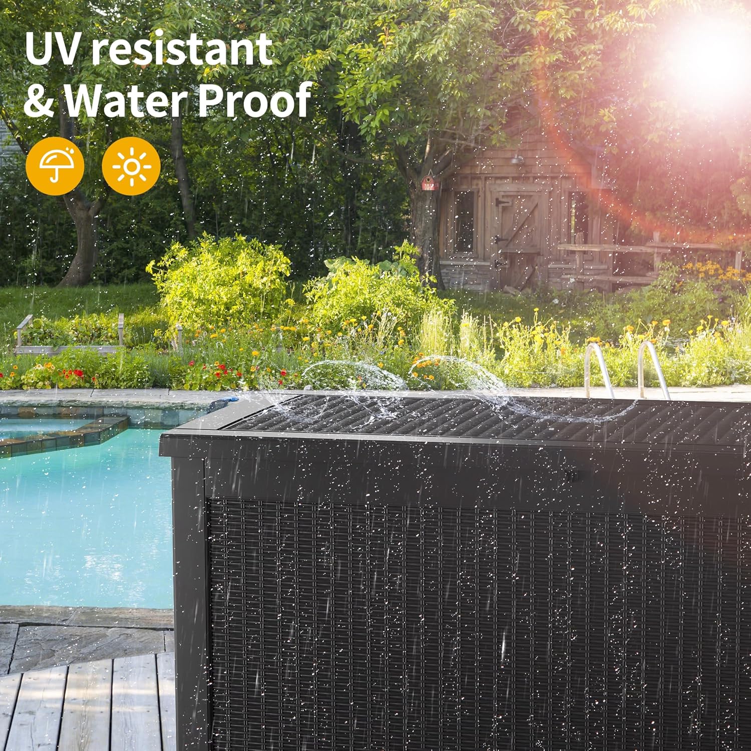 - Resin Material: The deck storage box made of resin material has excellent ultraviolet protection and waterproof ability, is suitable for all-weather outdoor environment, and has a service life of many years
