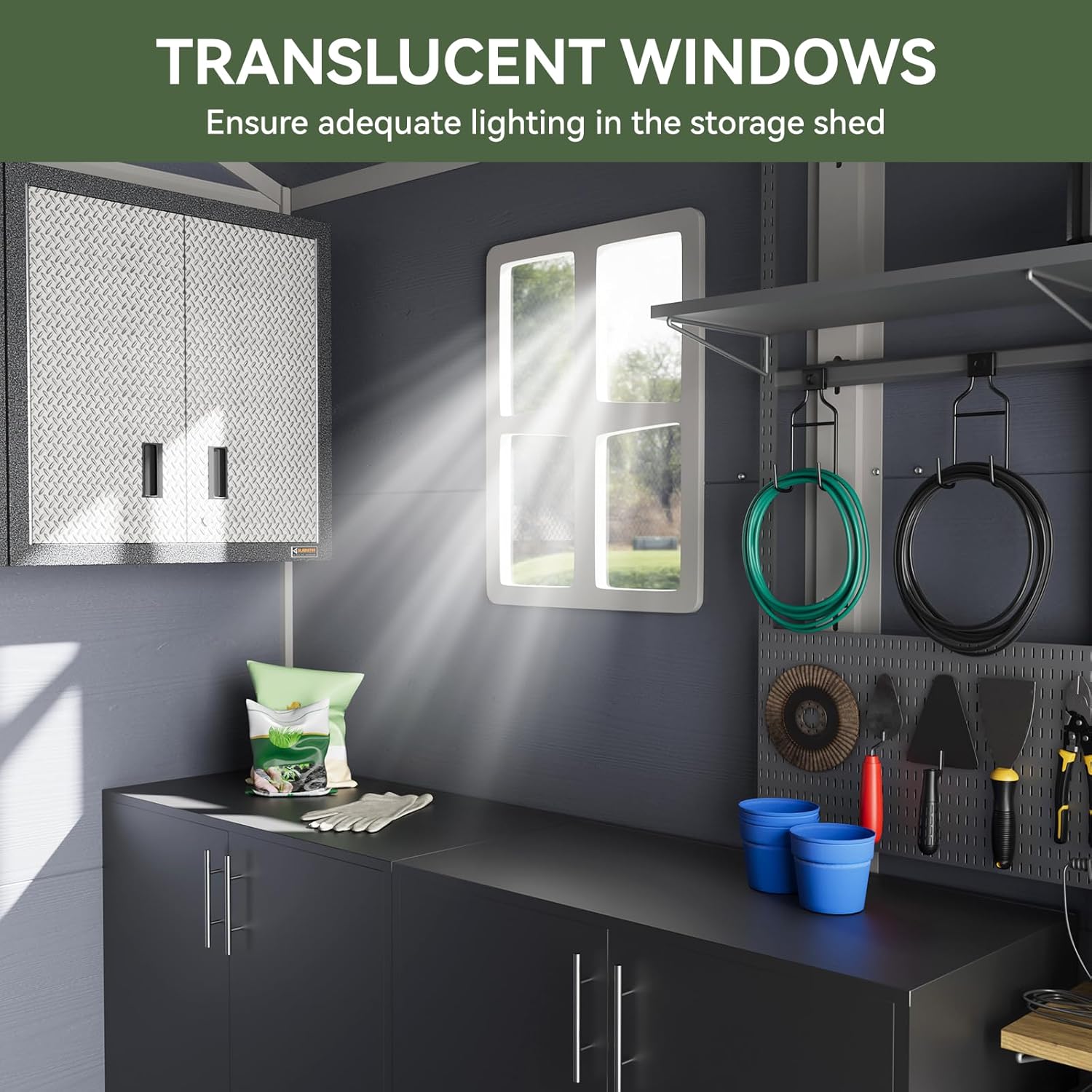 Aoxun 8 X 6.2 FT Resin Storage Shed Outdoor Plastic Large Garden Shed with Lockable Door, Floor for Backyard, Garden, Patio, Lawn, Grey (Grey, 8' x 6.2')