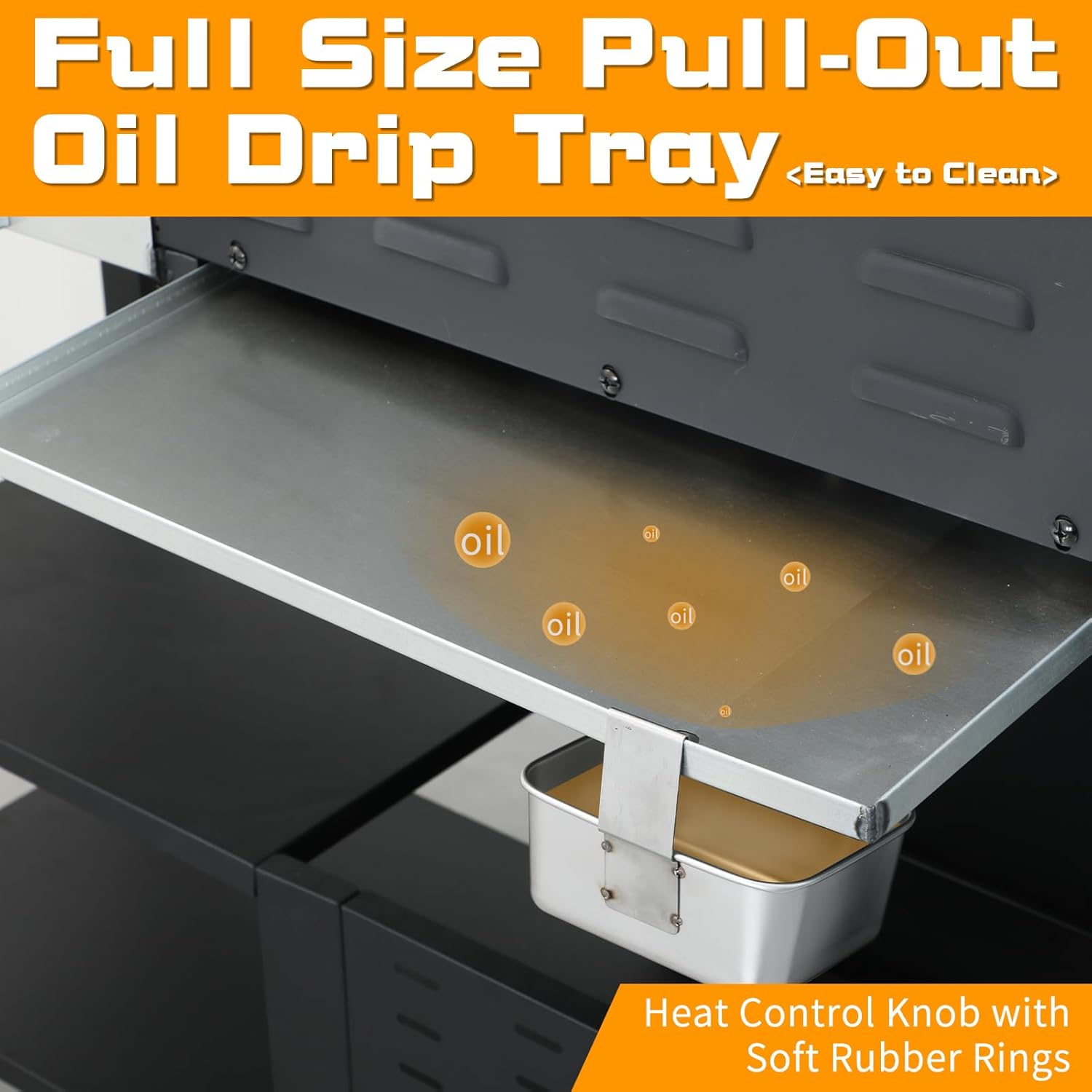 - Durable Stainless Steel Double-Layer Lid:The newly upgraded 430 stainless steel double-layer lid is more durable than the single-layer black powder-coated lid, effectively locking in heat and enhancing smoky flavors. Paired with an easy-grip non-slip handle, allows you effortless opening for enjoying grilling experience.Premium upgraded U-Shape cast iron grates with superior non-stick,rust-proof and crack-resistant,ensuring even heat distribution while simplify cleaning. Double-sided solid baking tray with excellent heat conduction,offering versatile cooking (grilling/pan-searing/low-oil frying), perfect for home BBQs, outdoor camping, and diverse culinary needs.