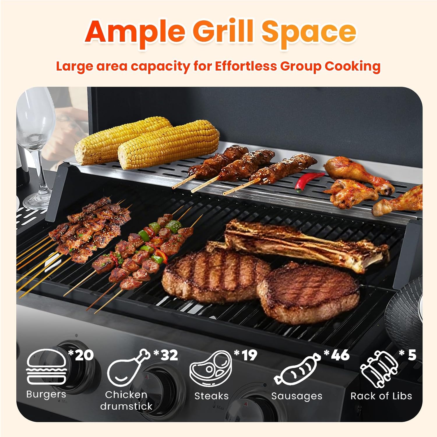 - 🍖 Spacious Cooking & Warming Areas - Equipped with porcelain-enameled wire grates, this gas grill offers a generous 19.6" x 12.8" cooking area plus a 19.1" x 3.7" warming rack. You’ll have ample space to sear steaks, grill burgers, and keep side dishes warm—all at the same time. Perfect for family meals and outdoor gatherings.