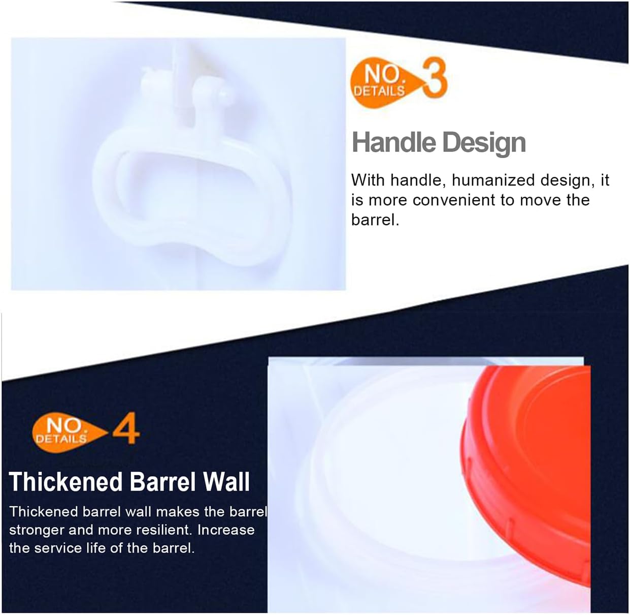 - Material: The water container is made of high-density polyethylene, which has super strong resistance to drop and pressure, is more resistant to acid and alkali, anti-aging, has strong toughness, is not easy to deform, and is durable.