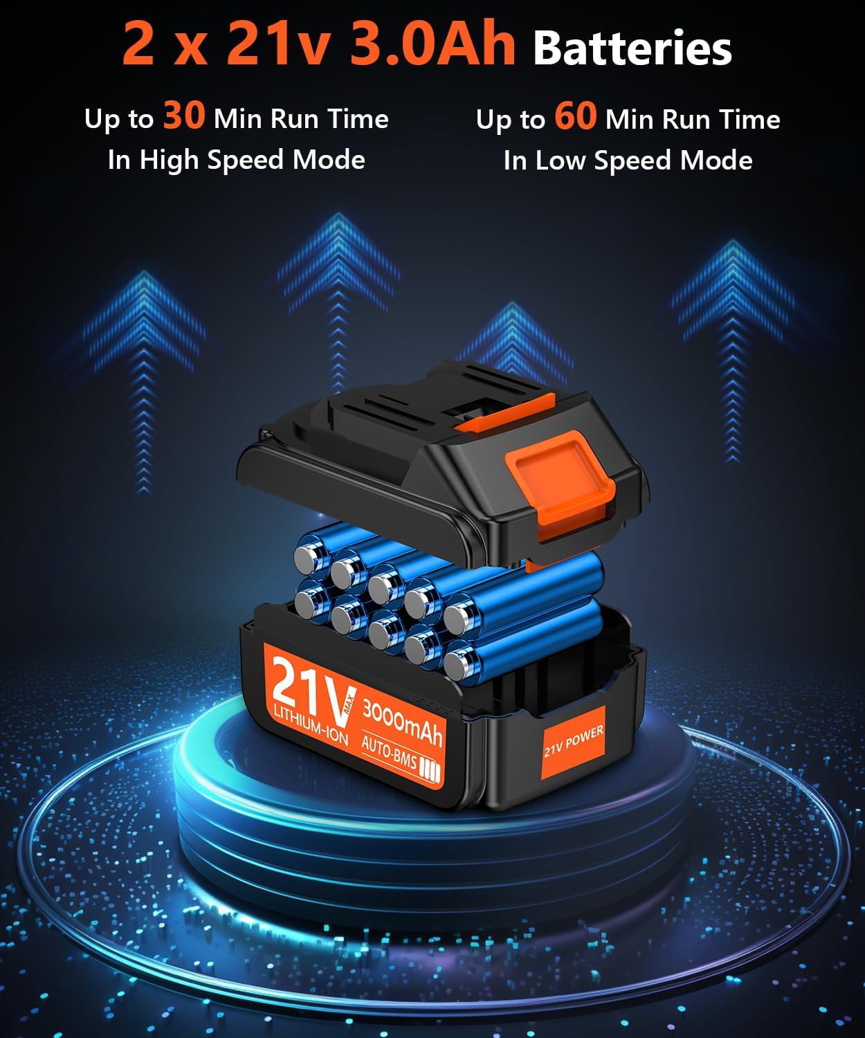- Package Contents & Warranty : The package includes 1*leaf blower cordless body, 1*blow tube, 1*extension nozzle, 1*adjustable shoulder strap, 2*21V-3.0Ah batteries, 1*charger, 1*user manual. If you have any not satisfied with ours products or receive damaged products, please let us know in any time, We provide you with 12 months free warranty service