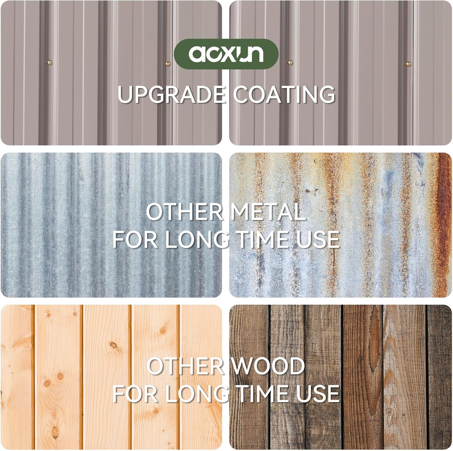 Aoxun 7x5 FT Outdoor Storage Shed with Base Garden Metal Shed with Lockable Door Outdoor Large Shed for Tool, Garbage Can, Bike, Mower, Brown