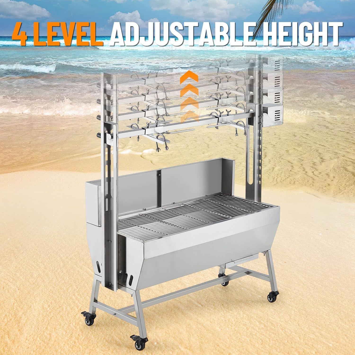- High-Capacity Rotisserie Performance:Designed for roasting whole pigs, lambs, goats, turkeys, or chickens.The 60kg load capacity accommodates substantial cuts of meat, suitable for outdoor feasts and traditional asador de puerco cooking.