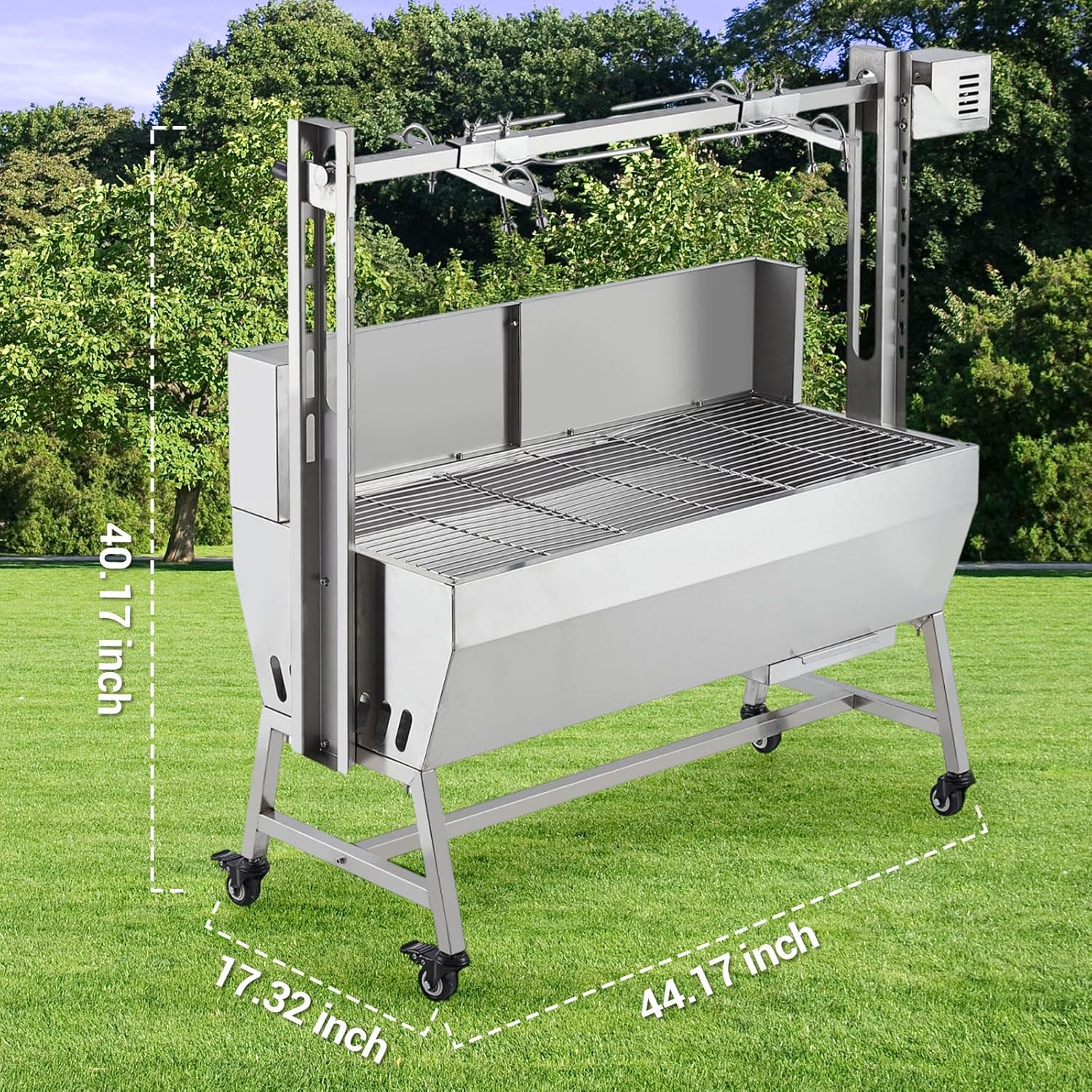 Stainless Steel Electric Pig Rotisserie Grill with Fire Pit & Baffle - 60kg Capacity, 50W Motor for Whole Pig/Lamb, Asador de Puerco Outdoor Camping BBQ