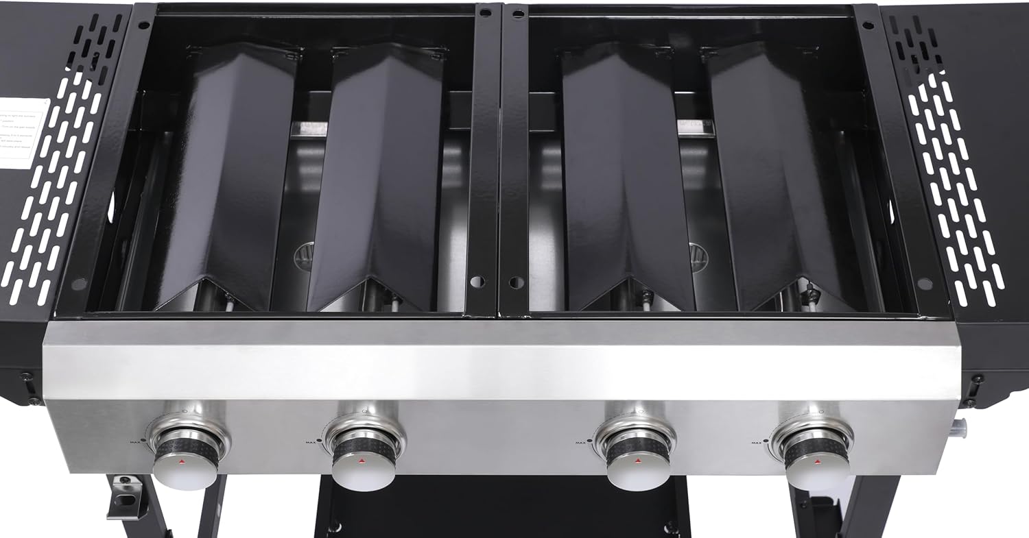 - π₯ Massive 38,200 BTU Output β Four primary burners + side burner for full meal prep.