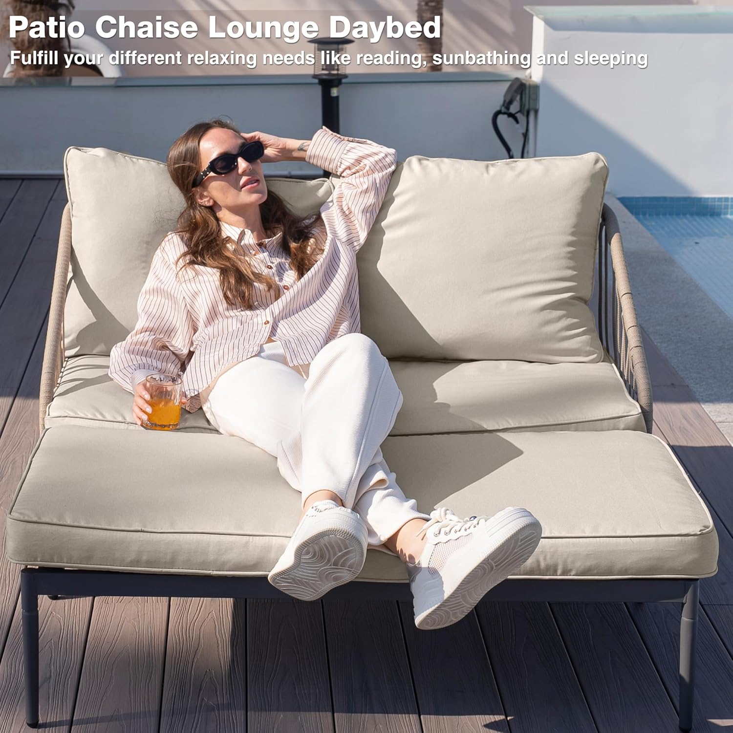 - Useful and Functional: This outdoor daybed can perfectly integrate with the surroundings, making a convenient spot for you to have a rest in your porch, backyard, courtyard, garden, patio, balcony, poolside, or solarium. It is a perfect upgrade to your outdoor living space