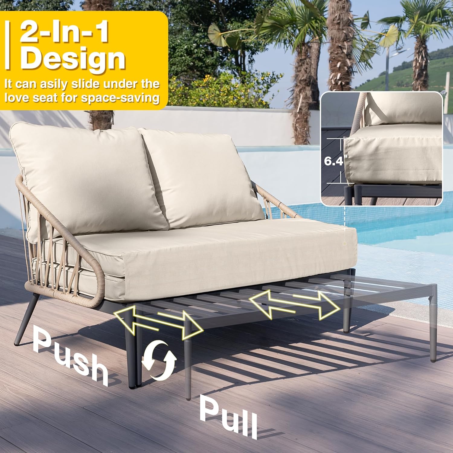 - Easy to Assemble:The lounge furniture set is simple to put together, and we provide the necessary tools and installation instructions, so you can track assembly progress easily. If any questions about products, please contact us by Amazon message, we will provide comprehensive after-sales service