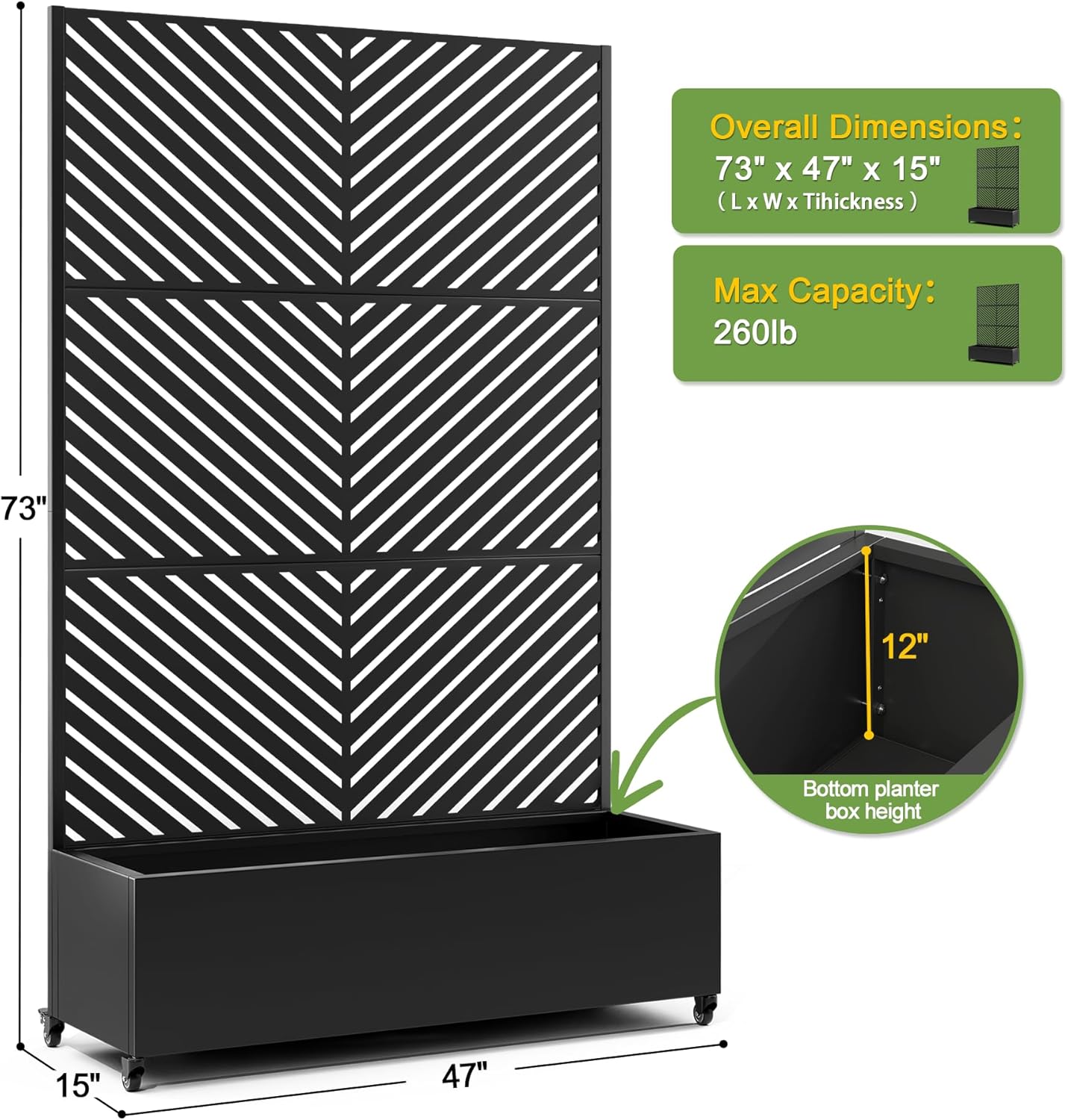 - 【Planter Box with Drainage Hole】Designed with a 12” deep planting bed and equipped with drainage holes at the bottom, this planter box provides ample space for healthy plant growth, ensuring excess water can escape and preventing waterlogging.