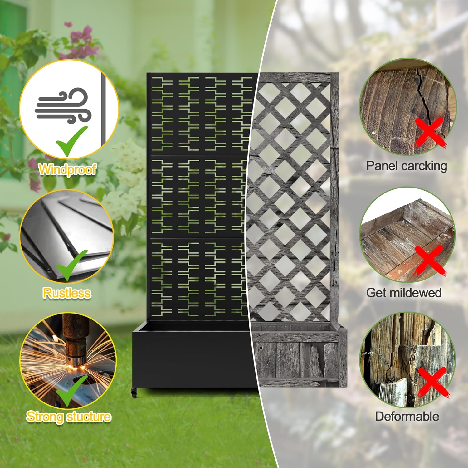 - 【Space-Saving Design】The combination of the planter box and trellis saves space while offering an attractive garden bed. This space-efficient solution is ideal for gardening enthusiasts facing space constraints, allowing them to cultivate beautiful gardens even in limited areas.
