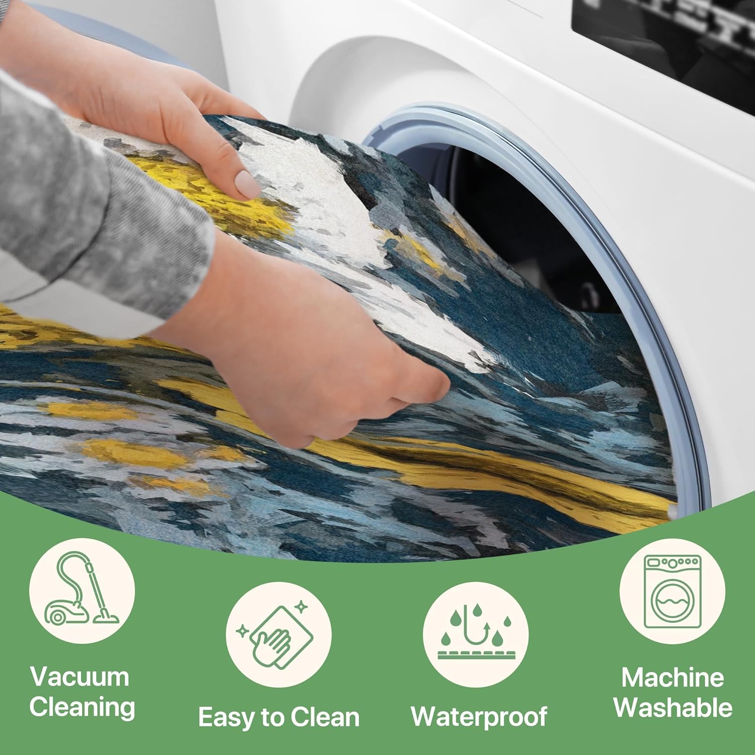 GENIMO Indoor Outdoor Area Rug 6' X 9' Waterproof, Washable Patio Rug Non Shedding, Easy Cleaning Floral Outdoor Carpet for Living Room, Bedroom, Dining Room, Balcony, Backyard, Deck, RV, Blue Yellow