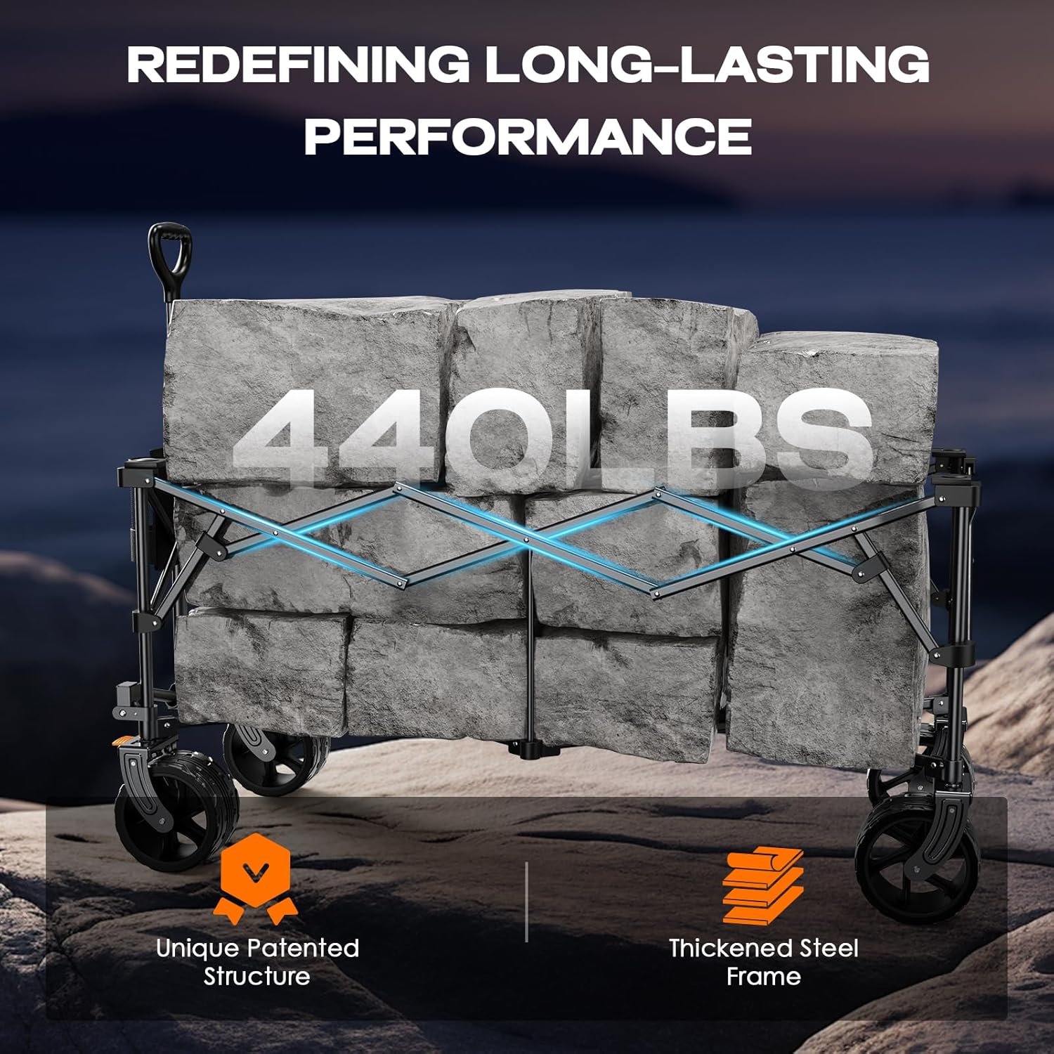 - Built to Last 5+ Years: Tough all metal frame and double-layer 600D waterproof Oxford fabric handles 440LBS—no bending or tearing. Durable for beach, camping, and outdoor use. Not a "one-season" wagon—your reliable outdoor companion.