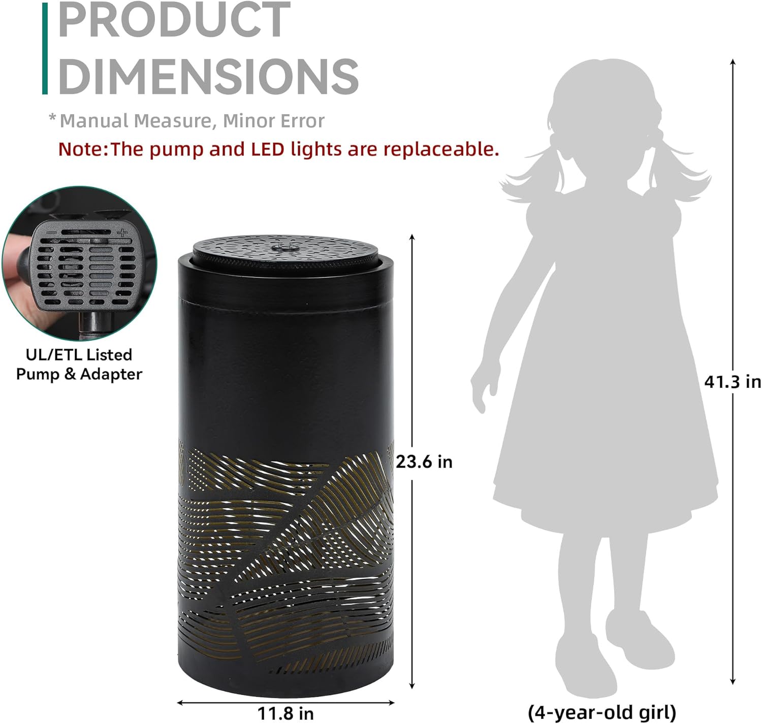 - [ Plug-and-Play & Certified Safe]:Tranquility shouldn’t be complicated. Simply add water, plug in with the included 6-foot power cord, and enjoy instantly. Equipped with an ETL/UL listed submersible pump for top-rated safety. Backed by a 1-year warranty. Pro Tip: To prevent freezing damage, drain the fountain, remove the pump, and store indoors during freezing weather.