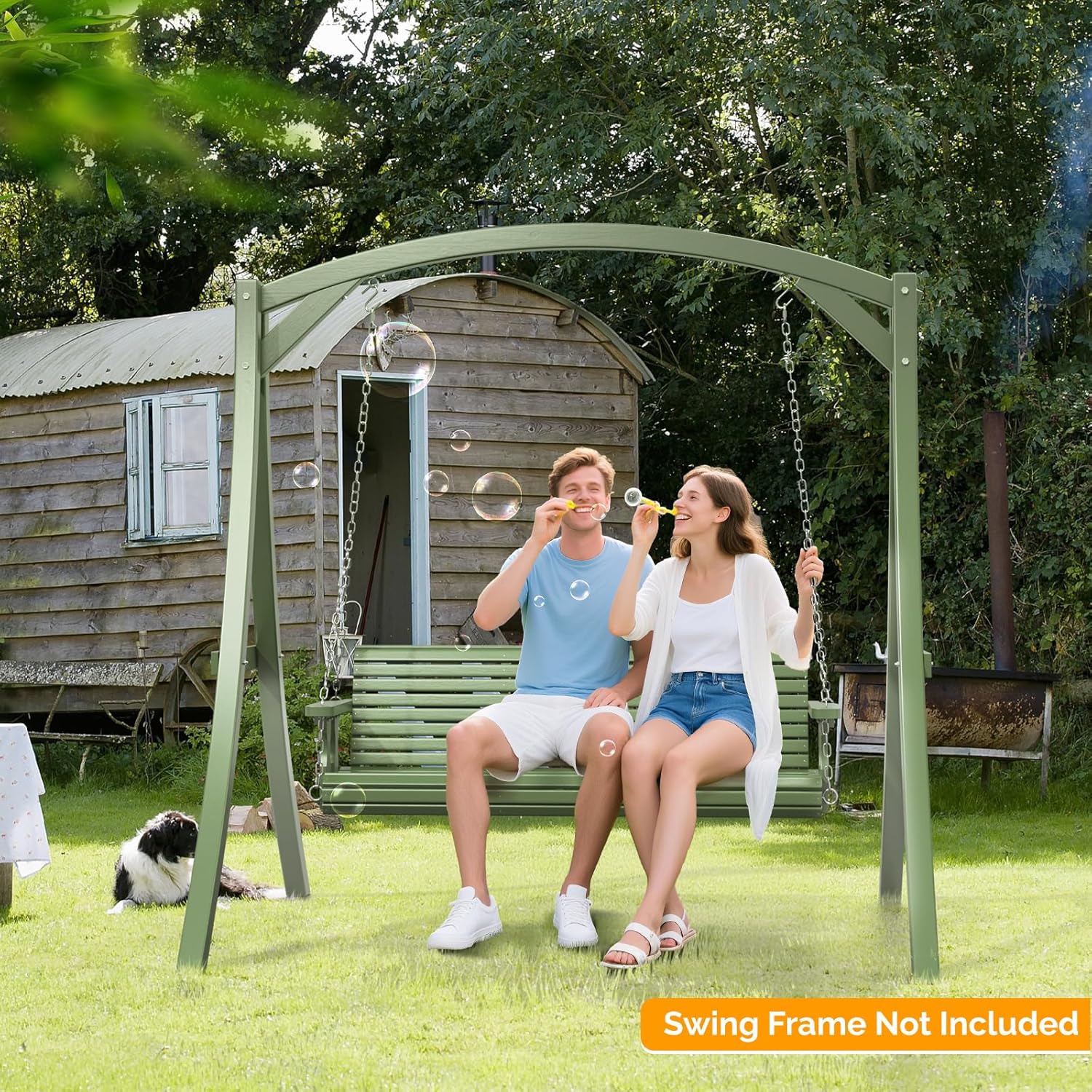 VINGLI Upgraded Patio Wooden Porch Swing for Courtyard & Garden, Heavy Duty 880 LBS Swing Chair Bench with Hanging Chains for Outdoors (Green, 5 FT)