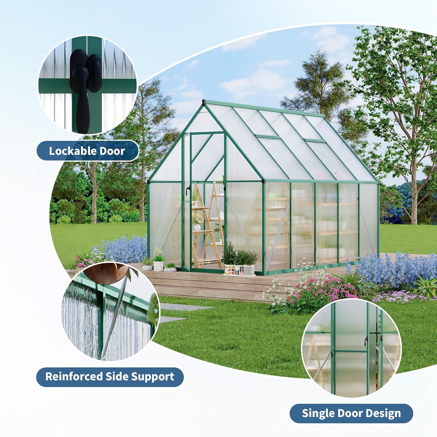 6'X9' Aluminum-Framed Polycarbonate Greenhouse, Heavy Duty Polycarbonate Greenhouse with Quick Setup Structure and Roof Vent, Large Enhanced Aluminum Greenhouses Kit for Outdoors