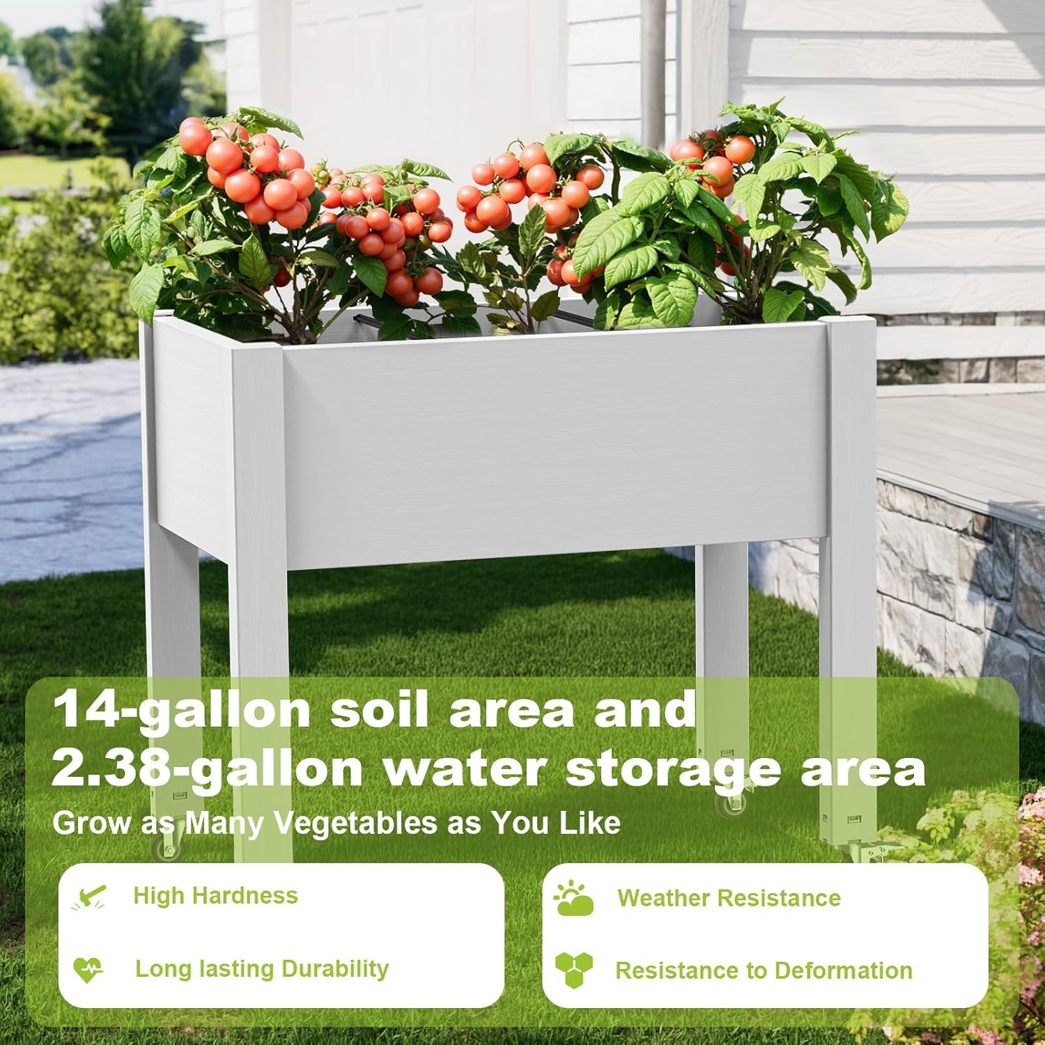Elevated Raised Garden Bed with Legs,Outdoor Large Resin Patio Planter Box Stand Divisible with Drain Plug,Water Monitor for Plants Vegetables Flowers Fruits(Ashen)
