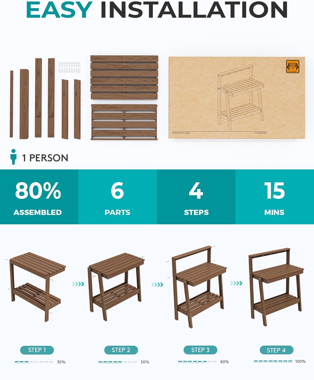 - Quick & Tool-Free Assembly: Everything you need for setup comes in the box. Just follow the straightforward instructions, and you can have your new garden work bench fully assembled and ready to use in under 20 minutes—no extra tools required.