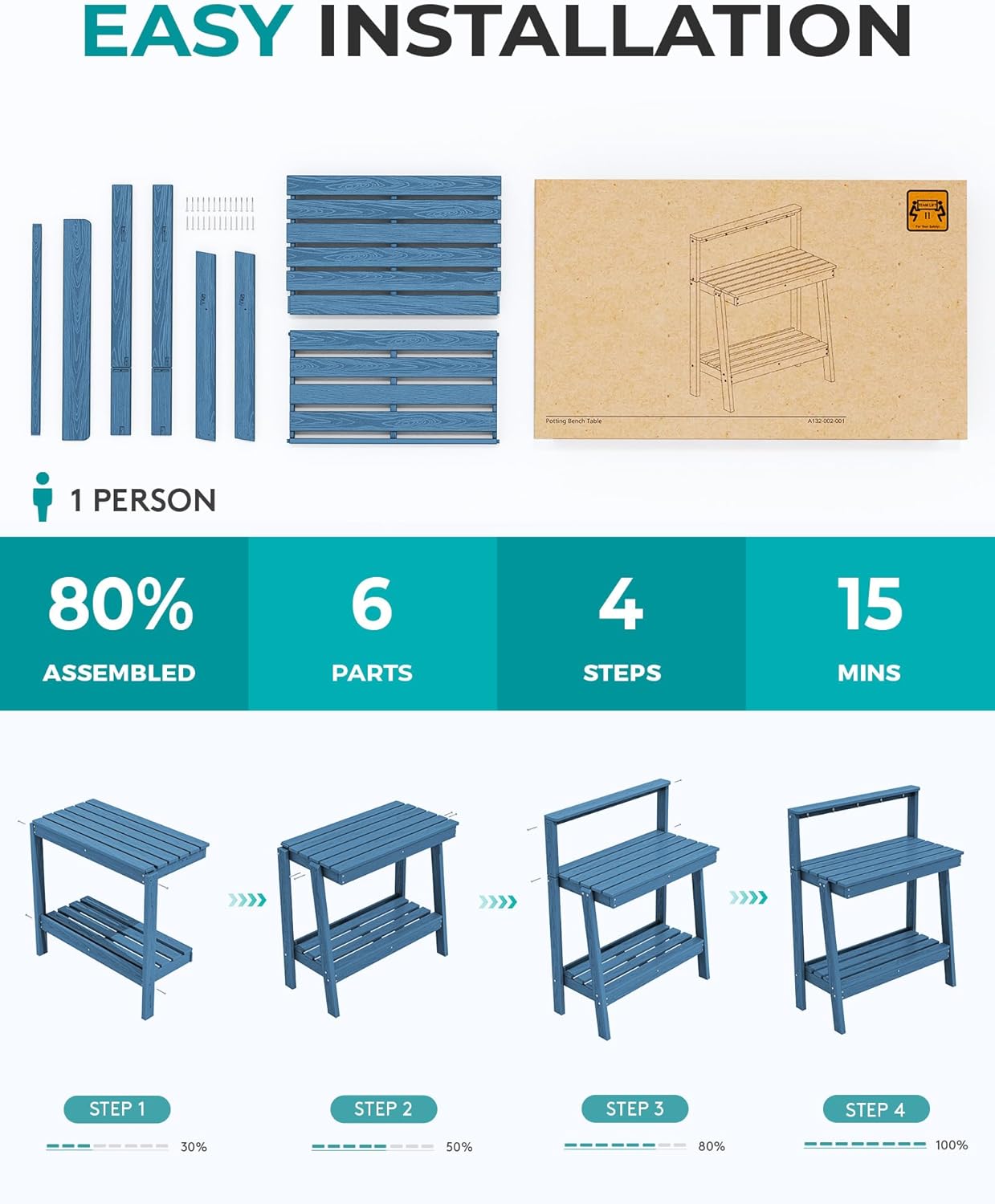 - Quick & Tool-Free Assembly: Everything you need for setup comes in the box. Just follow the straightforward instructions, and you can have your new garden work bench fully assembled and ready to use in under 20 minutes—no extra tools required.