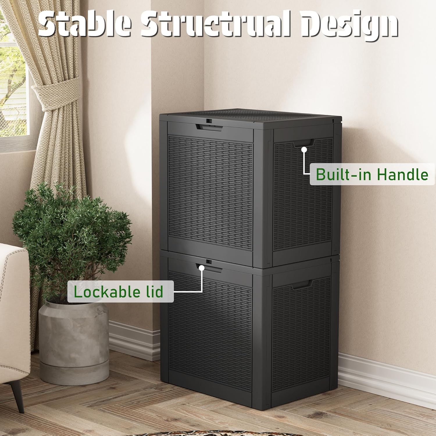 KAMABOKO 31 Gallon Outdoor Storage Box 2 Pack All-Weather Deck Box for Patio Furniture, Package Deliveries, Garden Tools, Pool Supplies & Cushions, Black